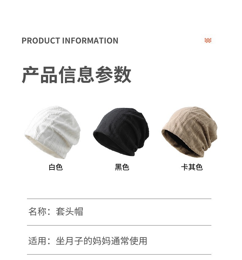 | 帽檐款式 | 无檐 | 颜色 | 白色, 卡其色, 黑色 |