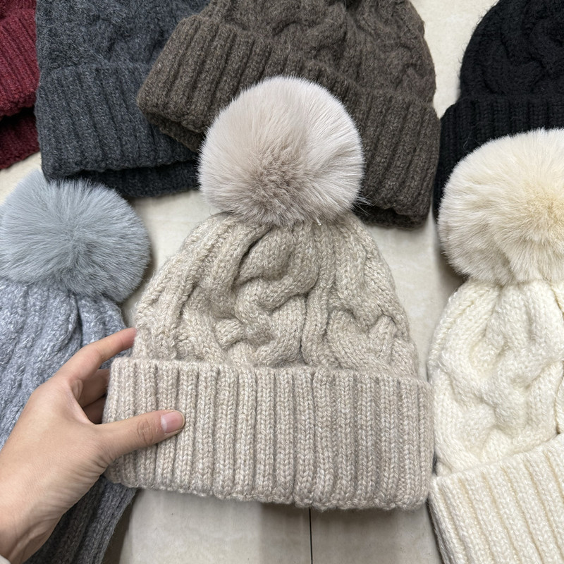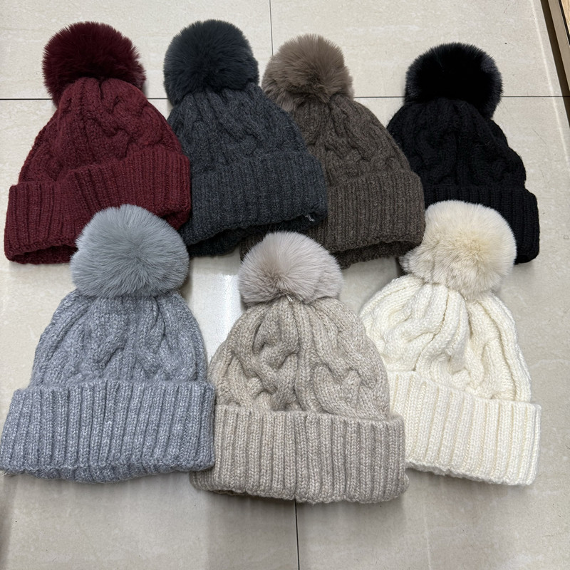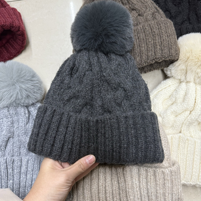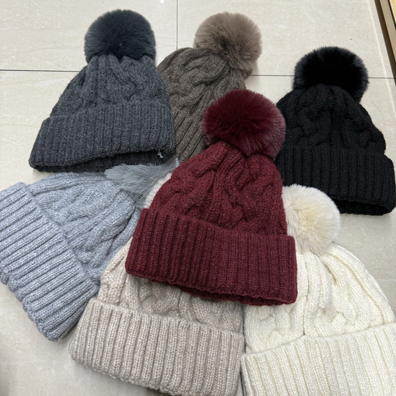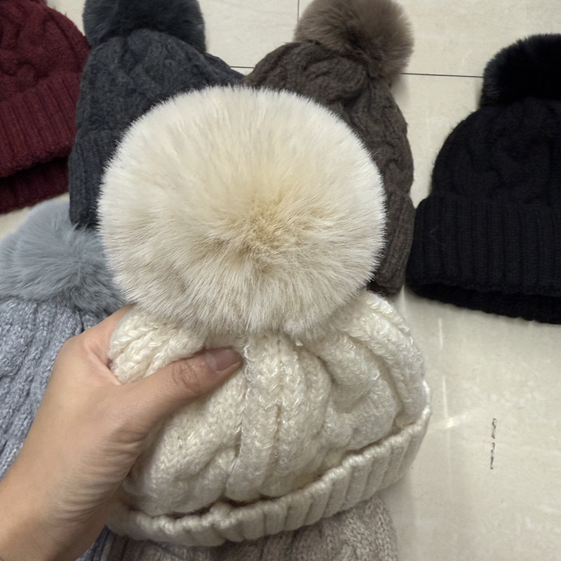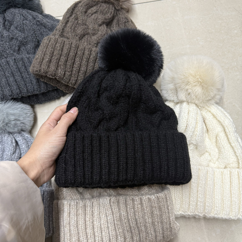두꺼운 기모 따뜻한 트위스트 스키니 울 모자 어린이 가을과 겨울 연령 감소 큰 모피 공 귀여운 니트 모자 콜드 햇