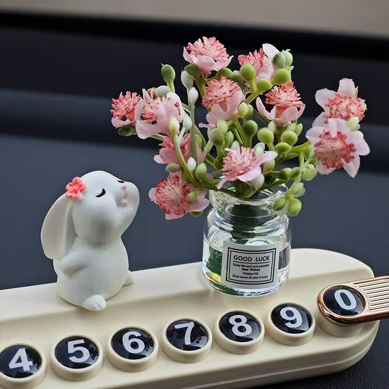 [향기 토끼 + 핑크 복숭아 꽃병] + 블랙 아로마테라피 번호판