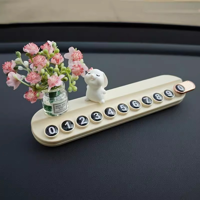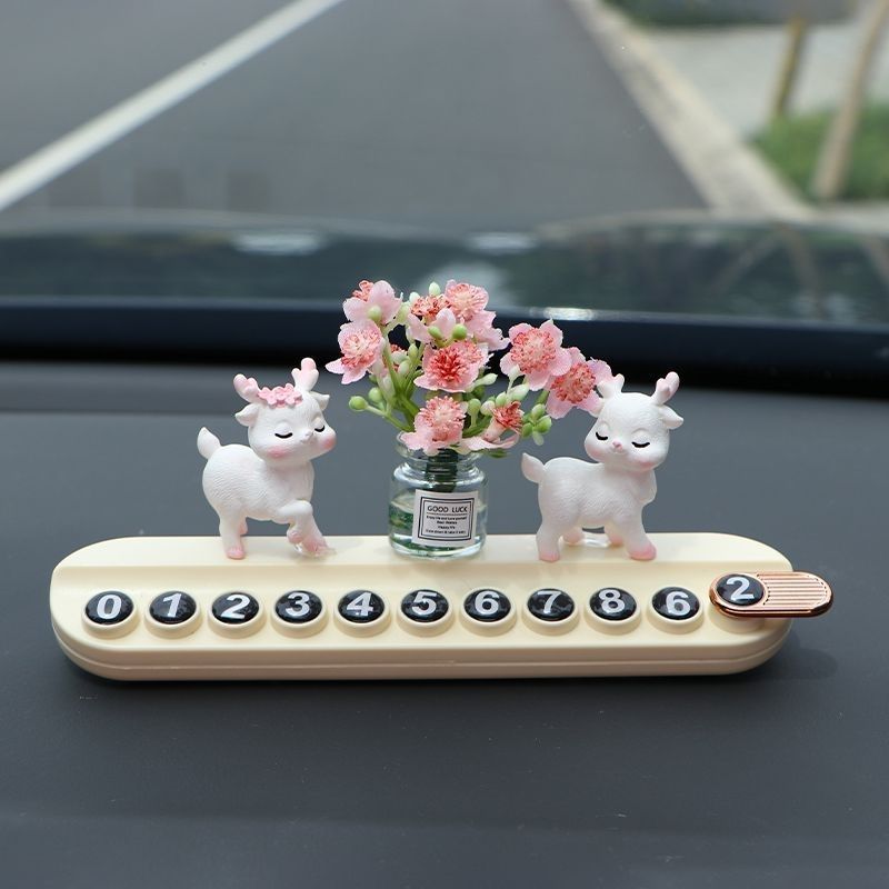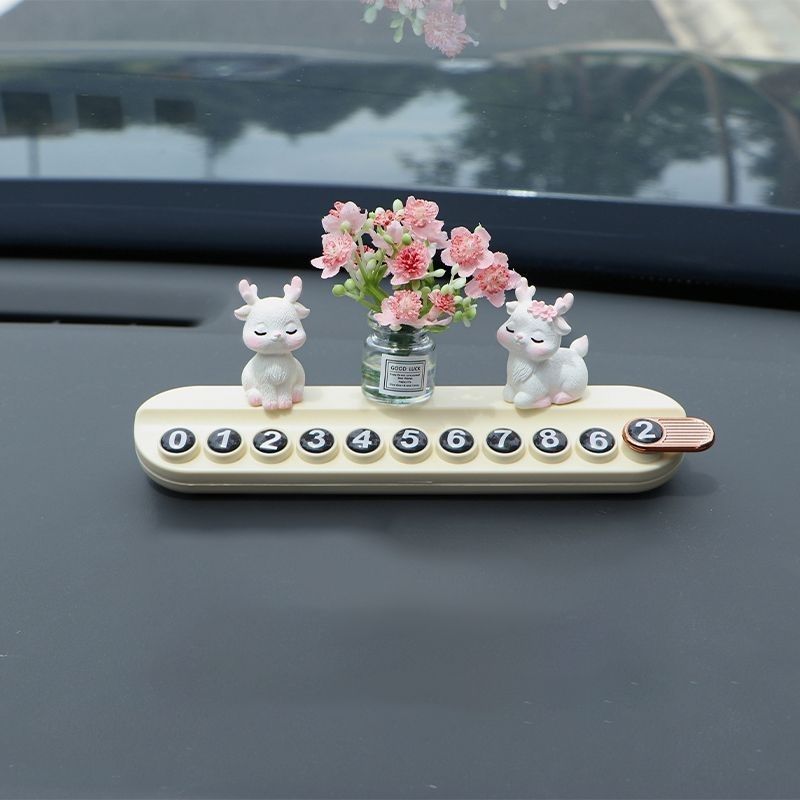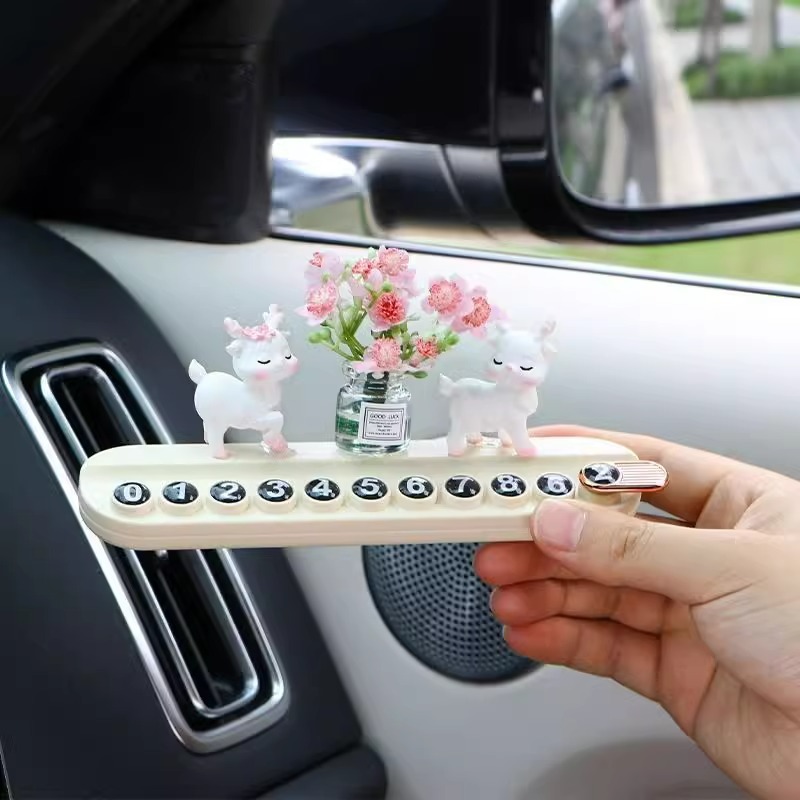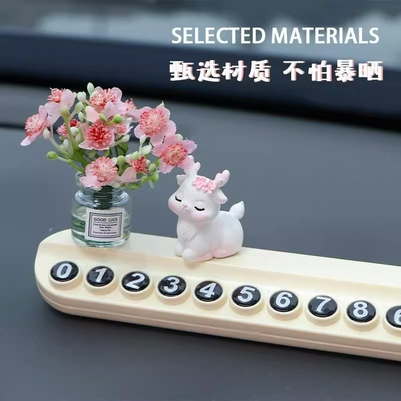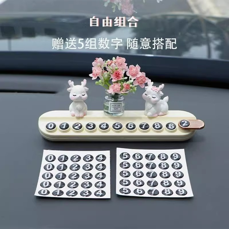 임시 자동차 주차 플레이트 사슴 꽃 자동차 디지털 전화 이동 자동차 디스플레이 번호 플레이트 자동차 장식품