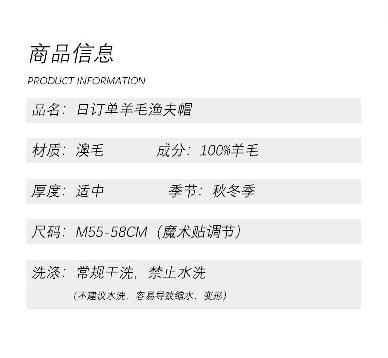 | 产品类别 | 盆帽 | 适合季节 | 冬季, 春秋季 |