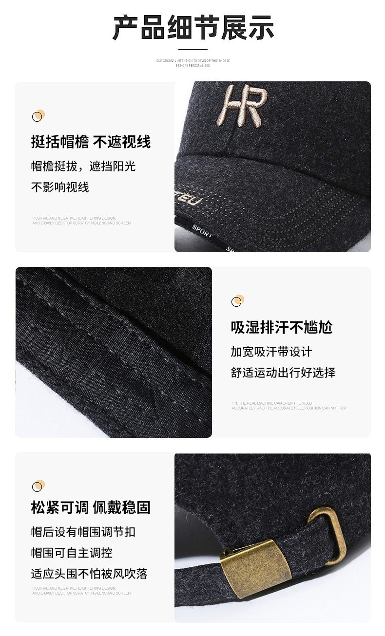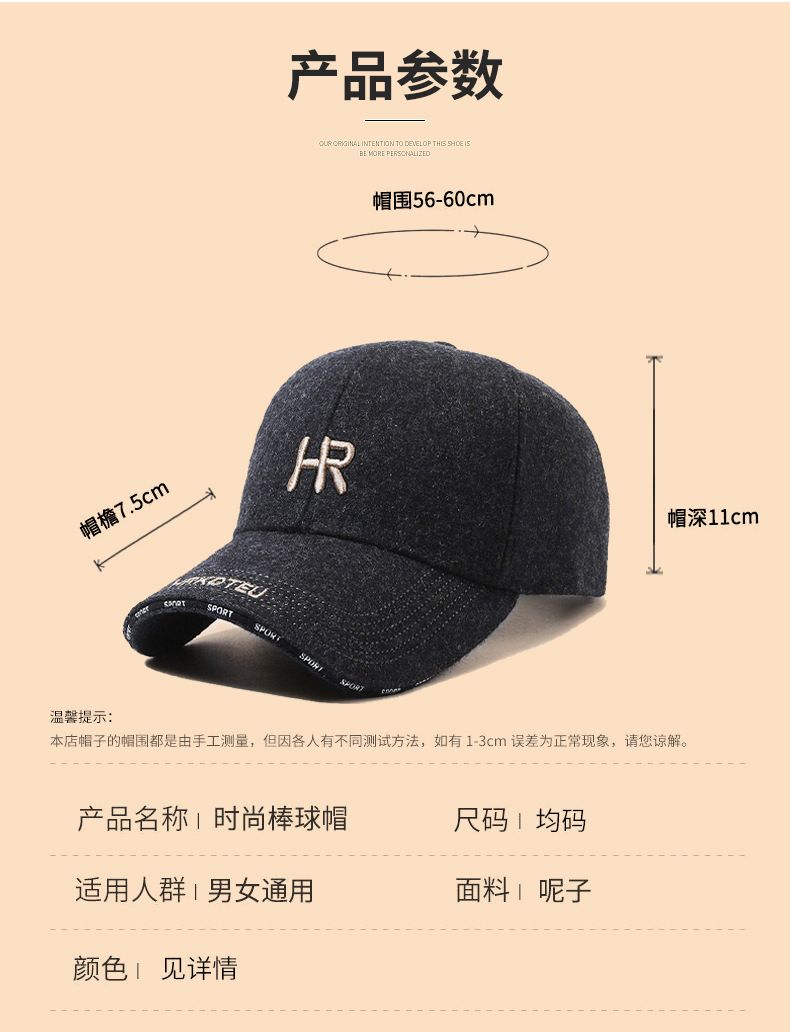 | 帽檐款式 | 大檐 | 颜色 | 毛呢HR黑黑, 毛呢HR黑白, 毛呢HR黑金, 毛呢HR灰灰, 毛呢HR灰金 |