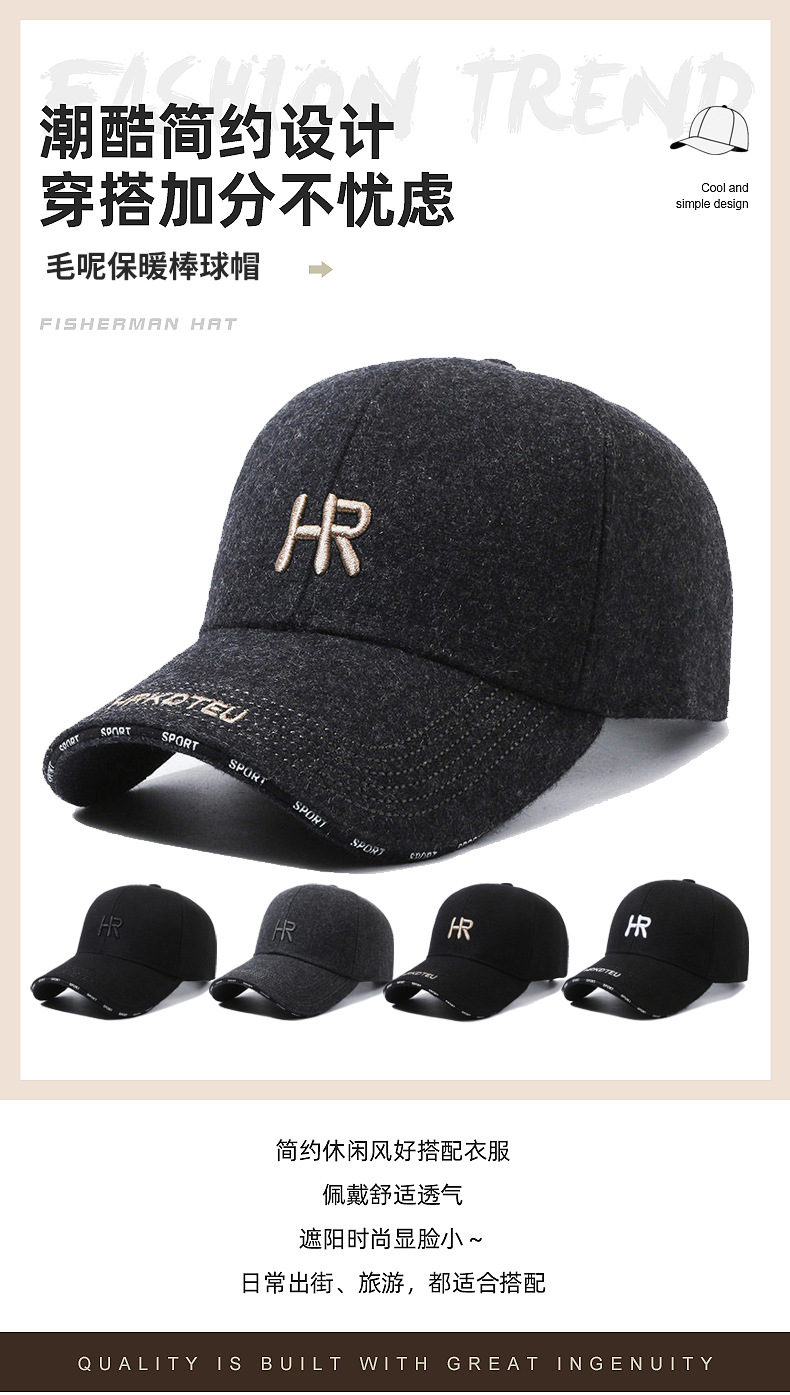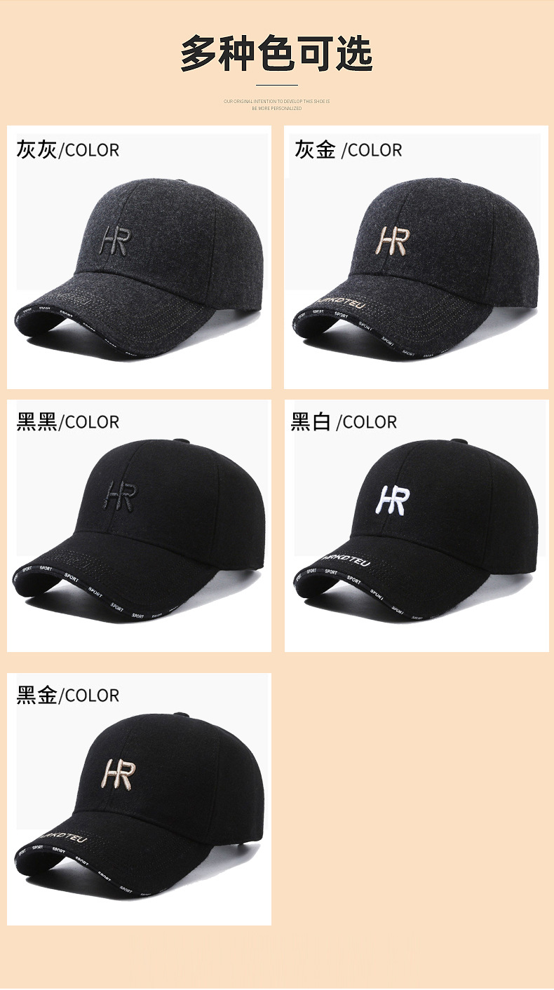 가을과 겨울 새로운 모직 한국 야구 모자 자수 편지 모자 남자 캐주얼 패션 두꺼운 따뜻한 모자
