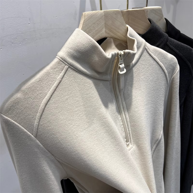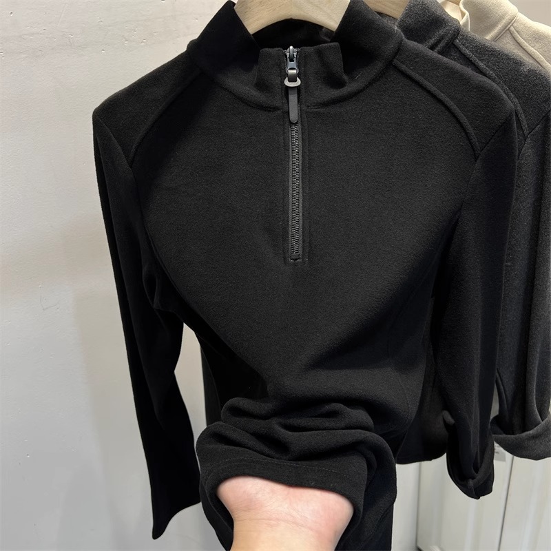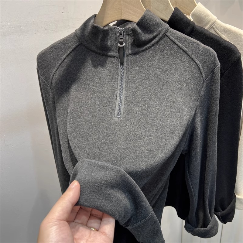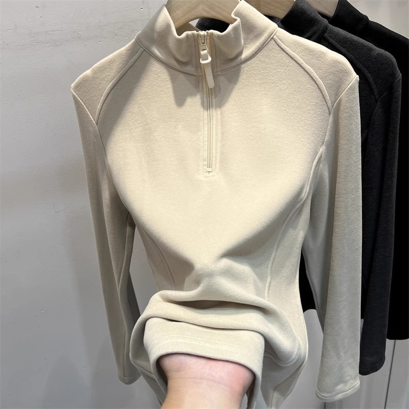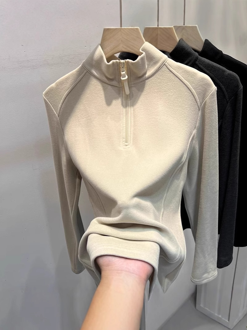 광저우 13 선의 높은화물! 지퍼 세미 하이 칼라 기모 벨벳베이스 셔츠 여성의 가을과 겨울 스탠드 칼라 긴 소매 탑