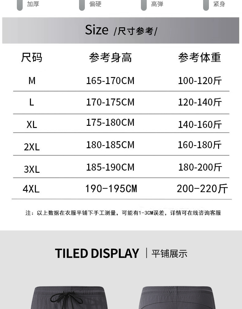 | 颜色 | 黑色, 灰色 | 尺码 | M, L, XL, XXL, XXXL, 4XL |