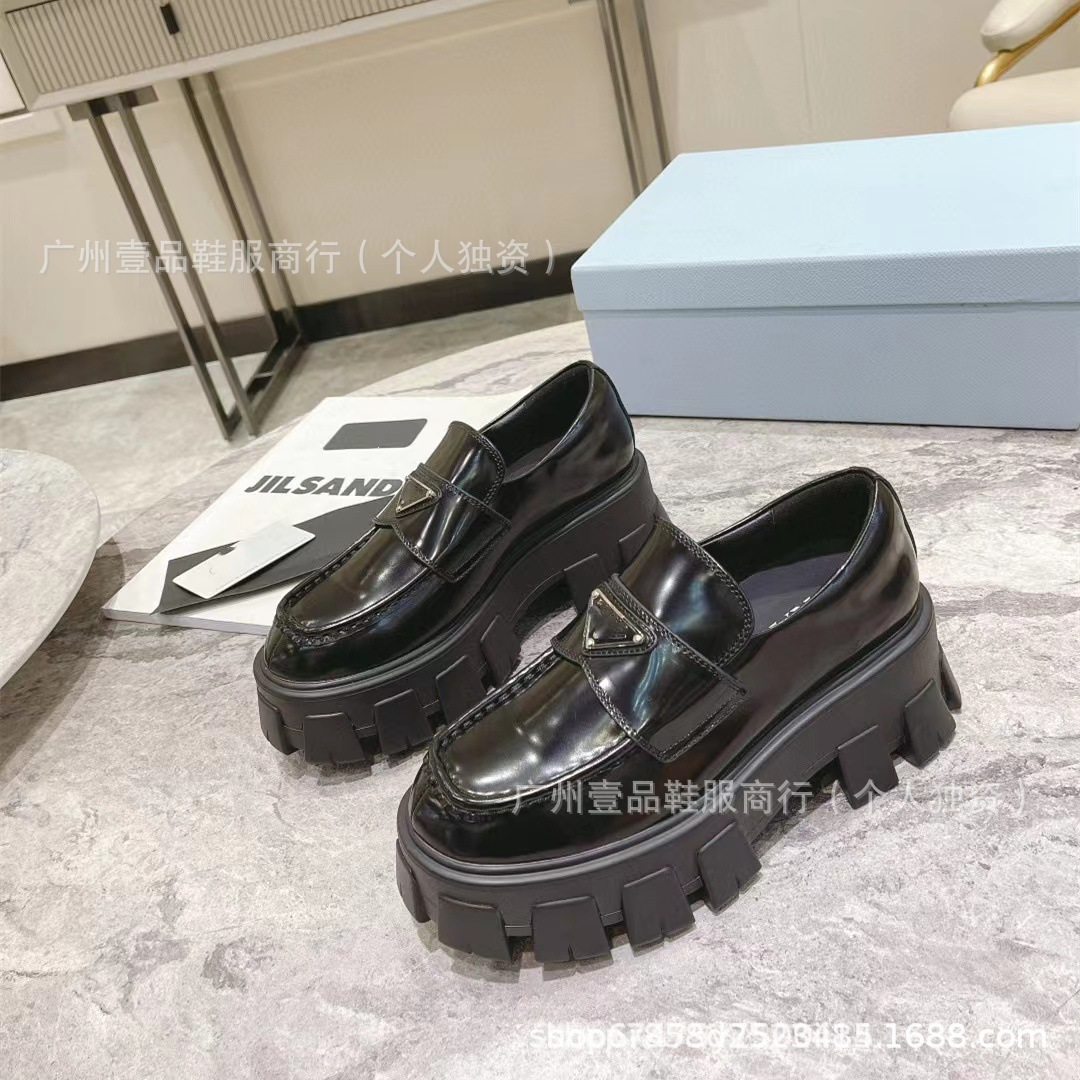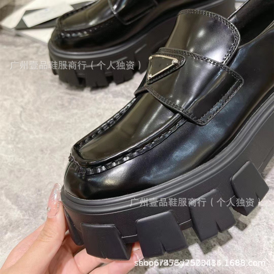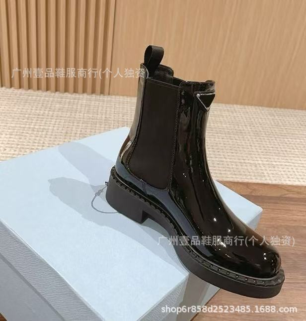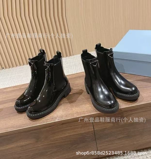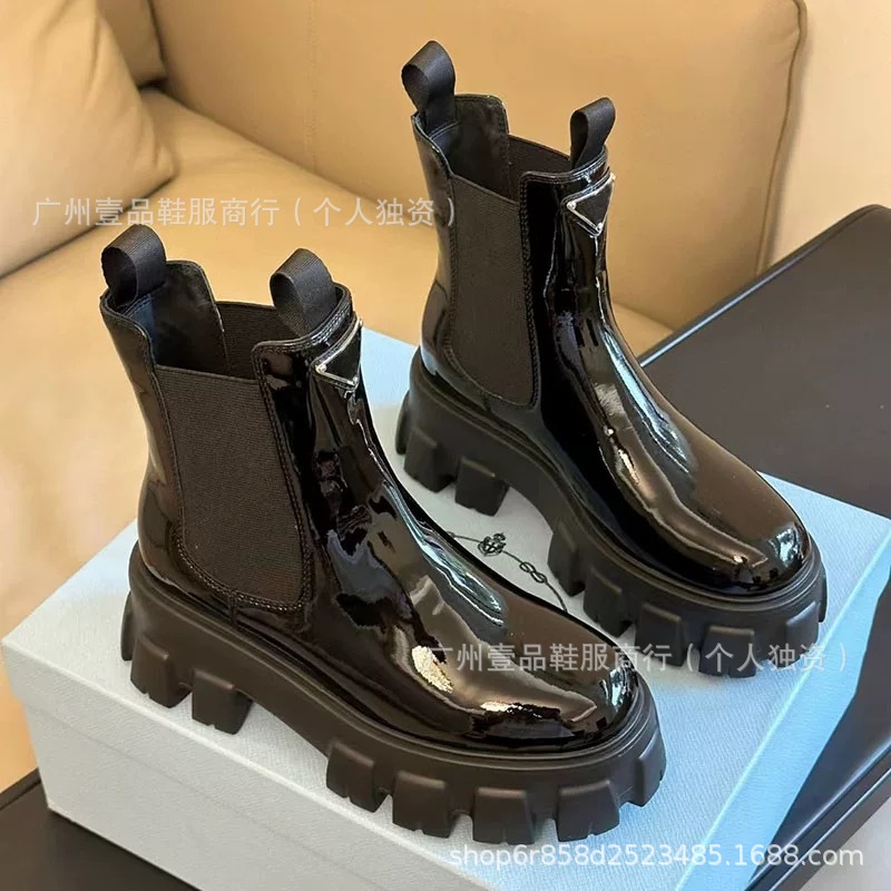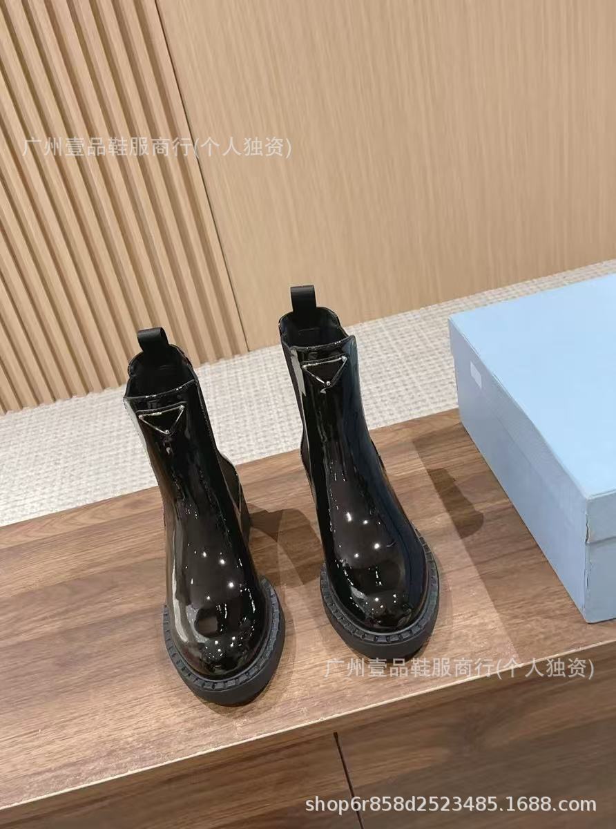 P 홈 ~ 클래식 기어 두꺼운 하단 로퍼 특허 가죽 매트 플랫폼 힐 삼각형 영국 스타일 짧은 부츠 작은 가죽 신발