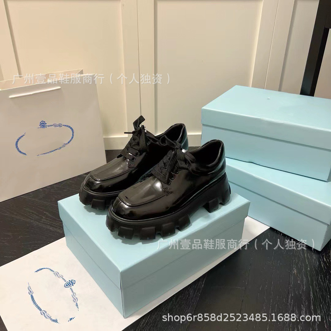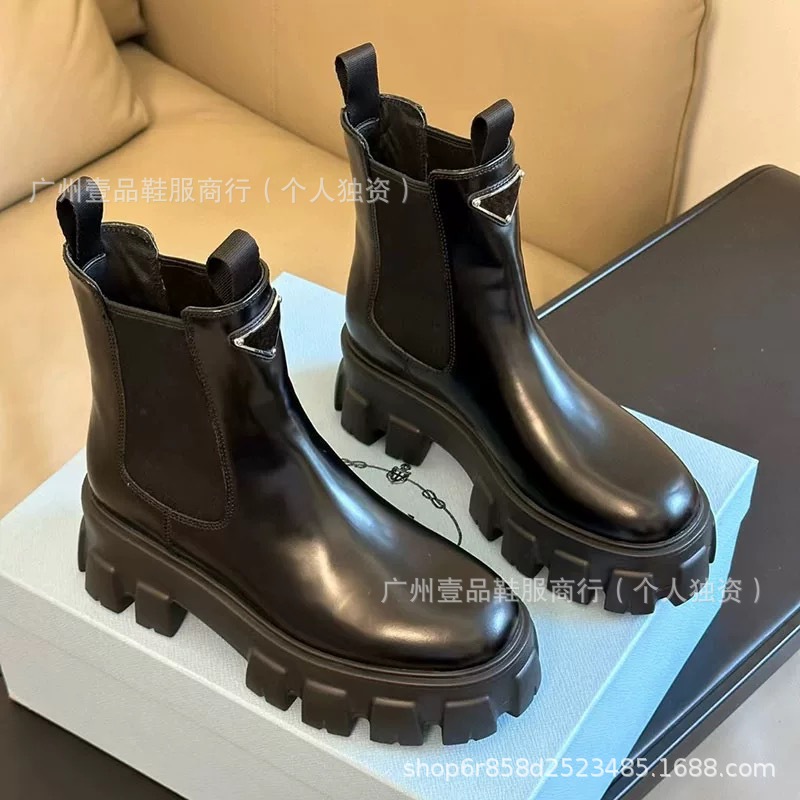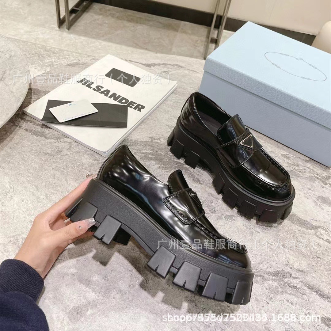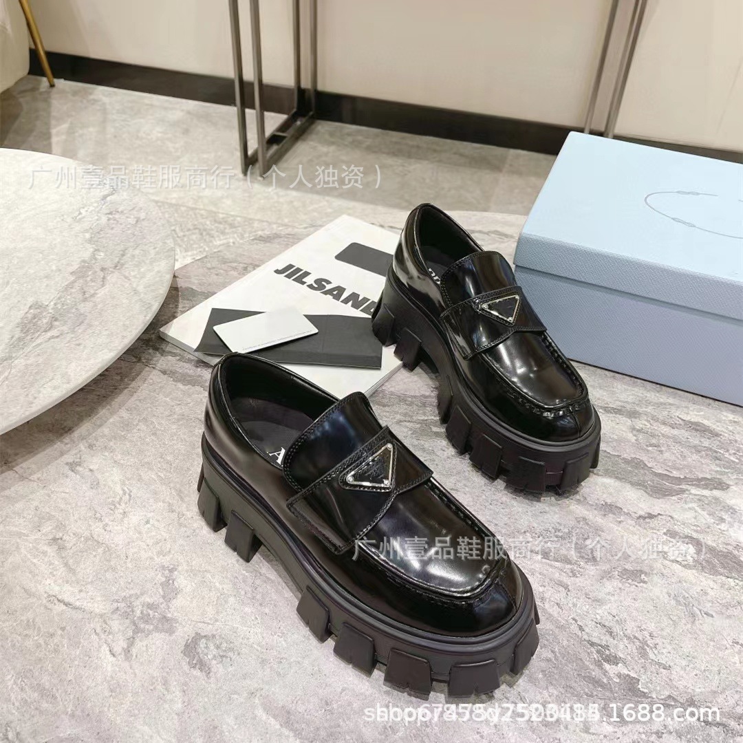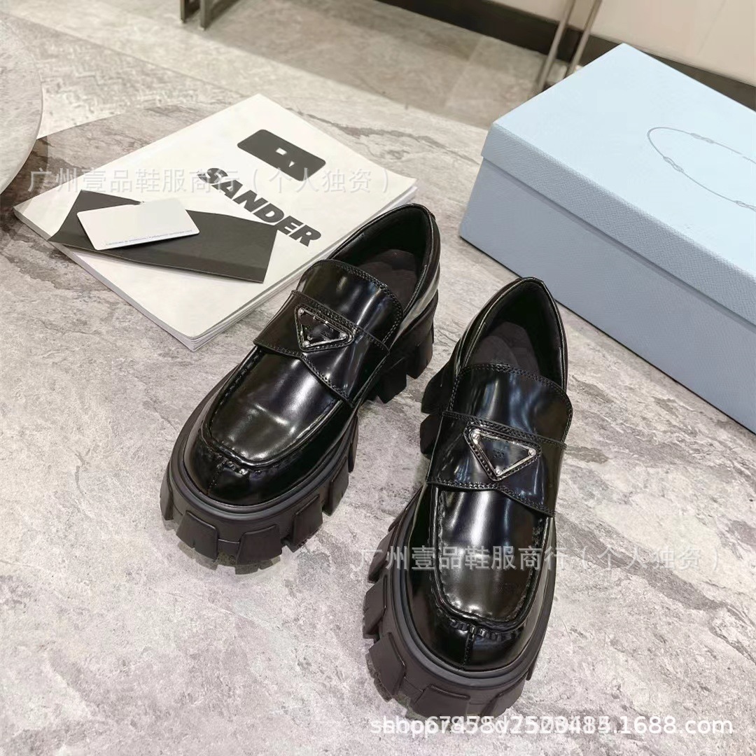 P 홈 ~ 클래식 기어 두꺼운 하단 로퍼 특허 가죽 매트 플랫폼 힐 삼각형 영국 스타일 짧은 부츠 작은 가죽 신발