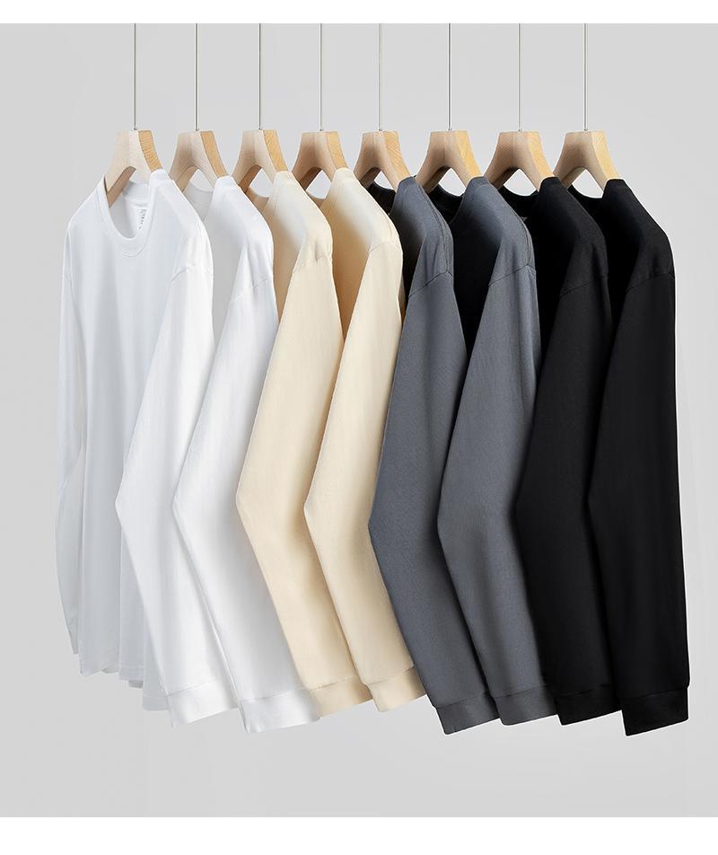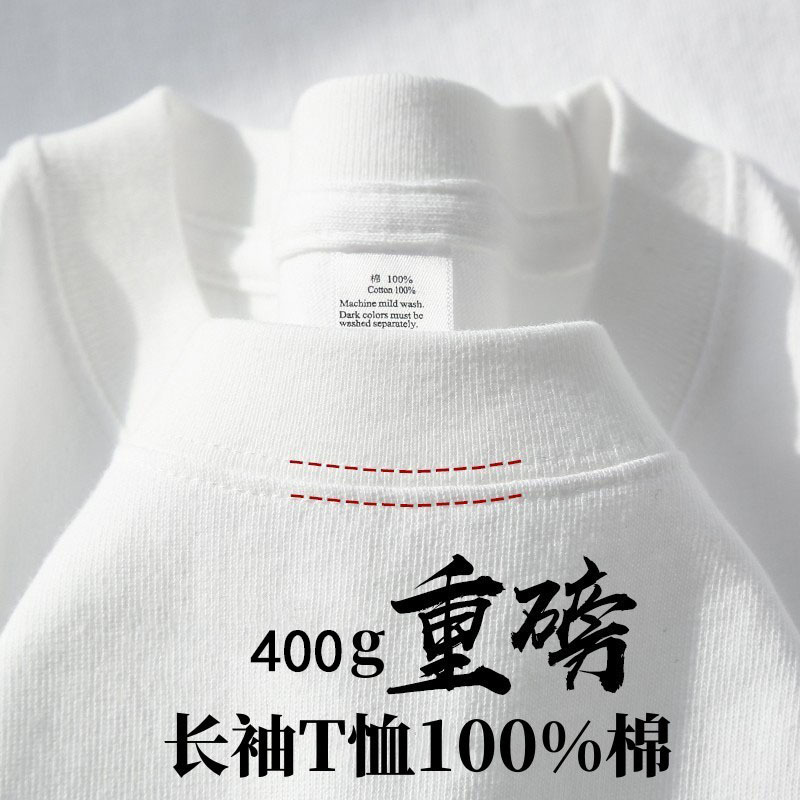 400g 순면 헤비웨이트 긴팔 봄가을 라운드넥 티셔츠 남녀공용 단색 루즈핏 빅사이즈 이너웨어 다용도 베이직 티셔츠