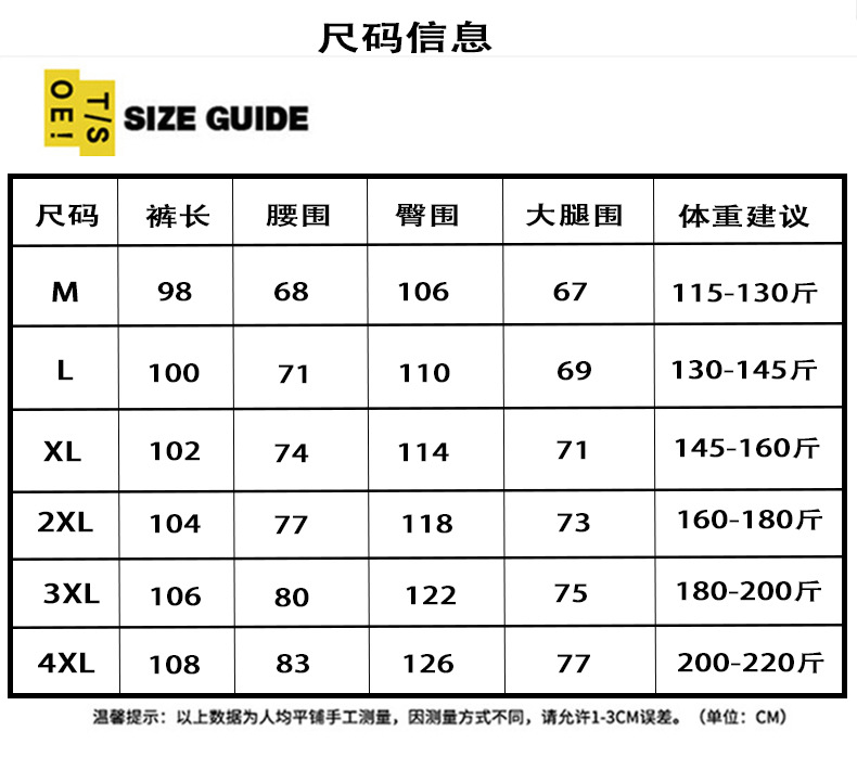 | 适用性别 | 男 | 2 | 加绒裤子 |