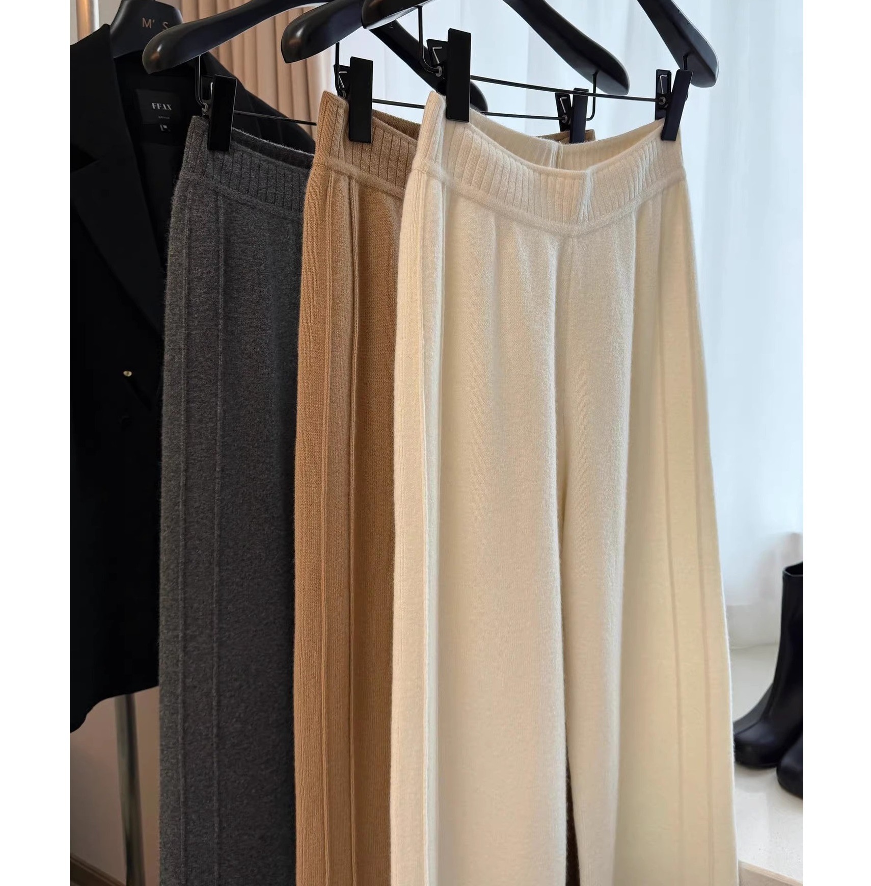 가을/겨울 잠금 미니멀리스트 바지 700g 울 좁은 넓은 다리 바지 슬림 따뜻한 기질 바지