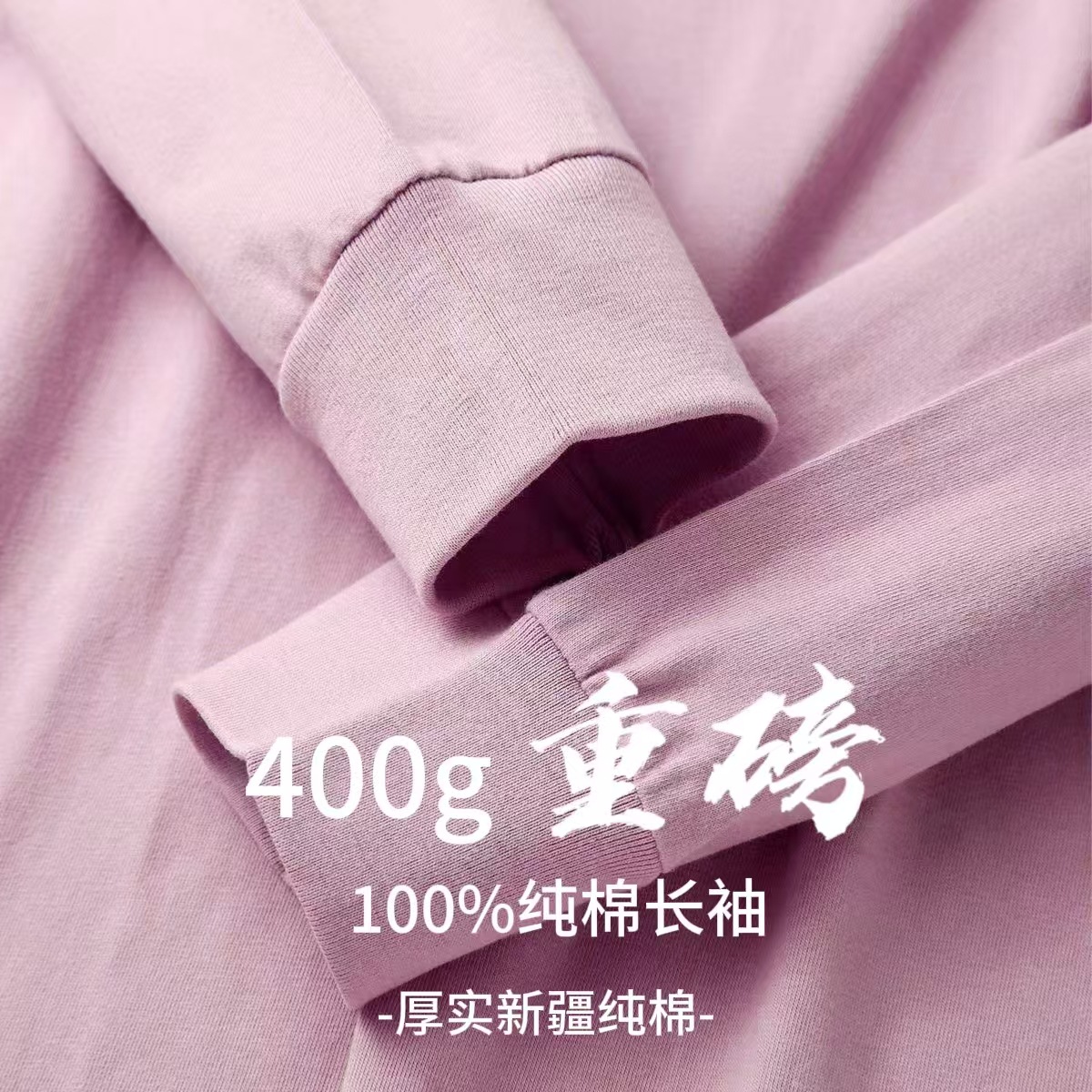 400g 신장 순면 헤비웨이트 긴팔 남성 루즈핏 화이트 티셔츠 여성 두꺼운 불투명 캐주얼 커플 이너웨어