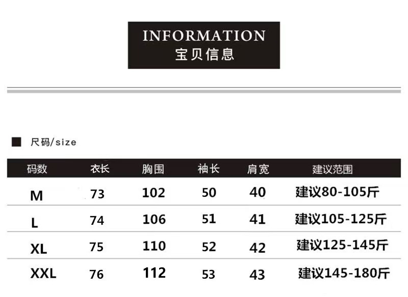 | 颜色 | 白色, 黑色 | 尺码 | M, L, XL, XXL |