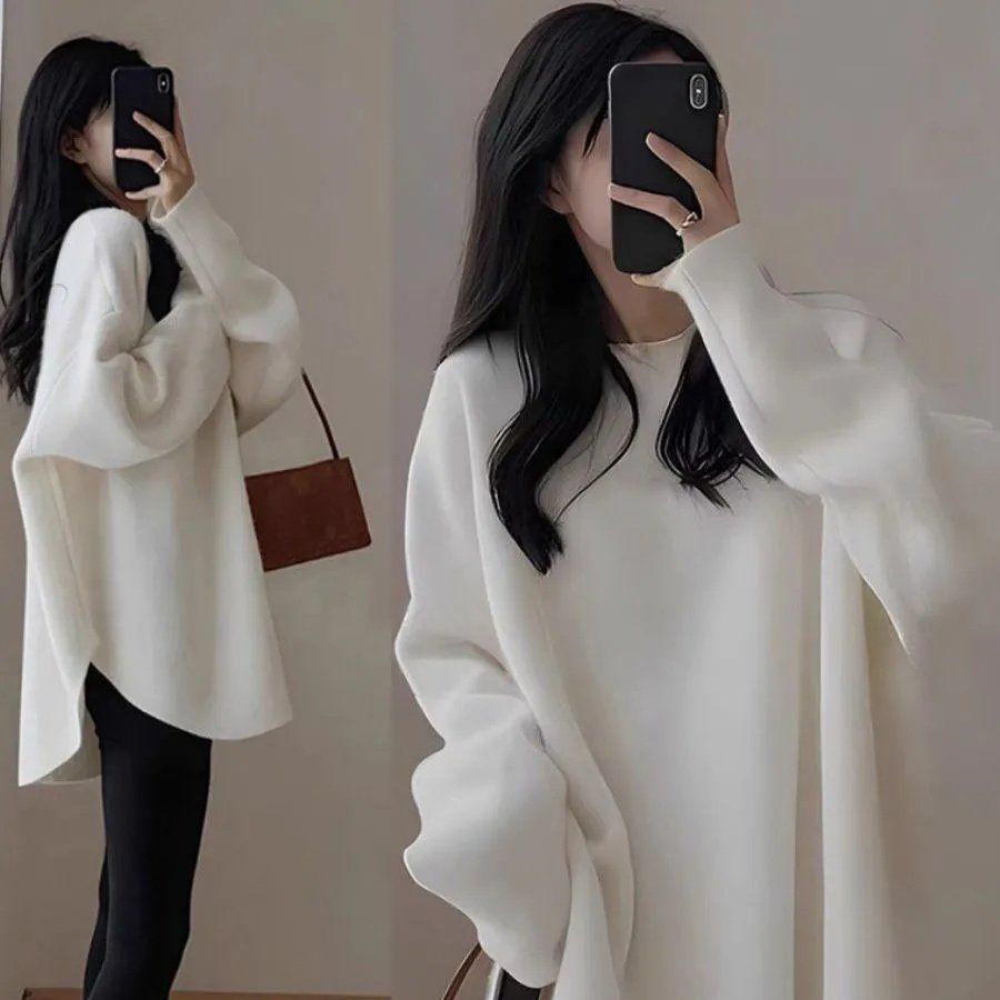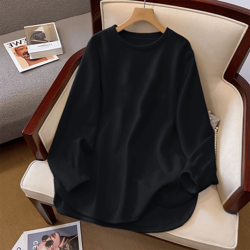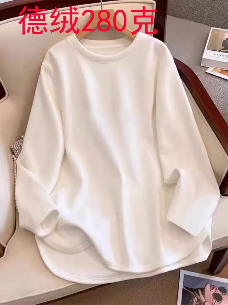 2025 최신 한국 스타일 다재다능한 벨벳 봄과 가을 긴 소매 바닥 셔츠 여성용 느슨한 중간 길이 불규칙한 탑