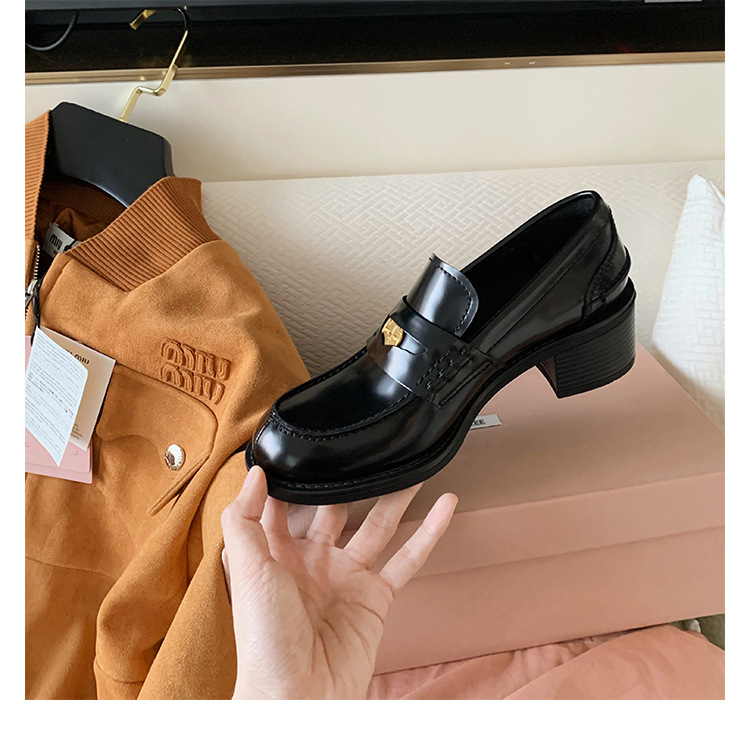Cowhide 버전 ~ 포도 어머니 조커 영국 바람 둥근 머리 miu 작은 금화 페달 두꺼운 뒤꿈치 두꺼운 바닥 로퍼