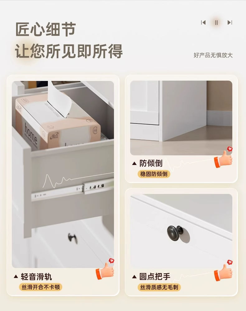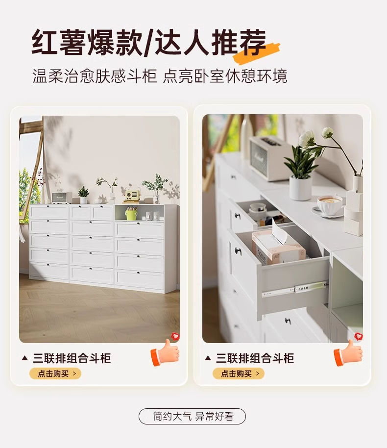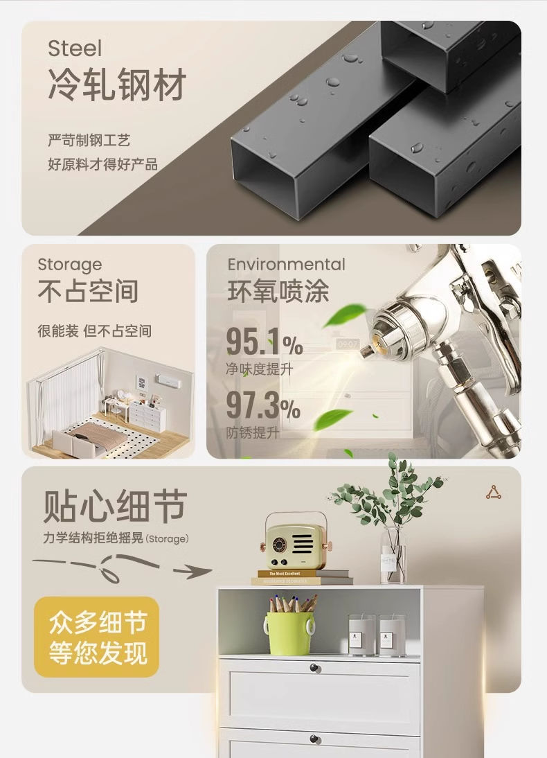 서랍장 침실 침실 단철 보관 캐비닛 흰색 간단한 거실 TV 사이드 콤비네이션 서랍 캐비닛