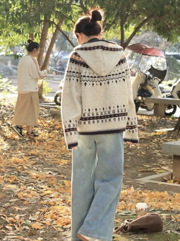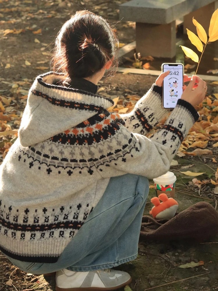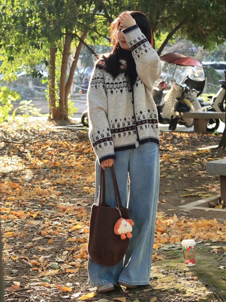 하이 엔드 센스 게으른 한국 스타일 루즈 펠 아일랜드 자카드 스웨터 여성 가을 겨울 스웨터 탑 착용