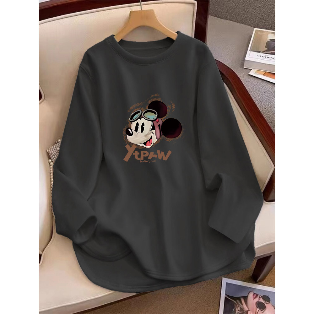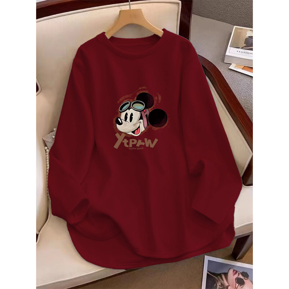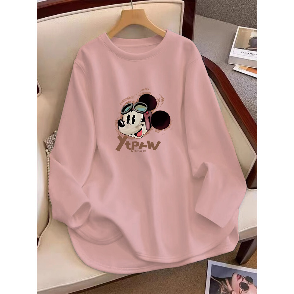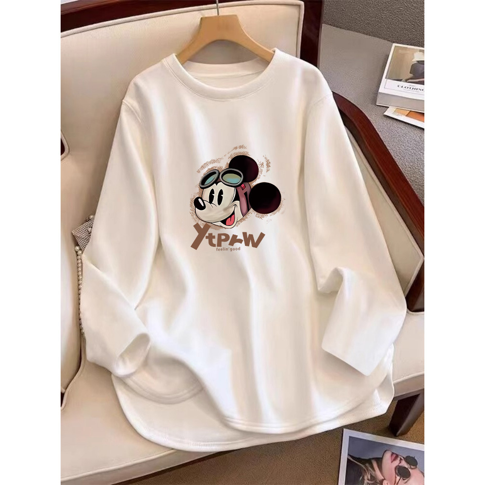 엉덩이를 덮는 양털 샌딩 긴팔 티셔츠 여성 중견 한국식 느슨한 화이트 탑 내베이스 셔츠 가을