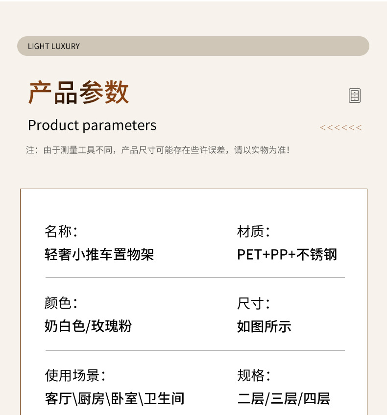 | 颜色 | 二层-黑+米, 二层黑+玫红, 三层-黑+米, 三层-黑+玫红, 四层-黑+米, 四层-黑+玫红 | 规格 | 无规格 |