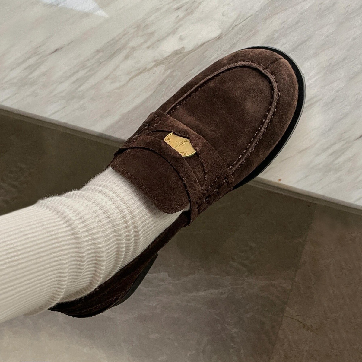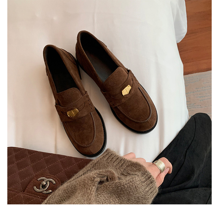 Cowhide 버전 ~ 가죽 금화 두꺼운 밑창 작은 가죽 신발 여성 봄 한 단계 게으른 로퍼 두꺼운 뒤꿈치 Mary Jane 단층 신발