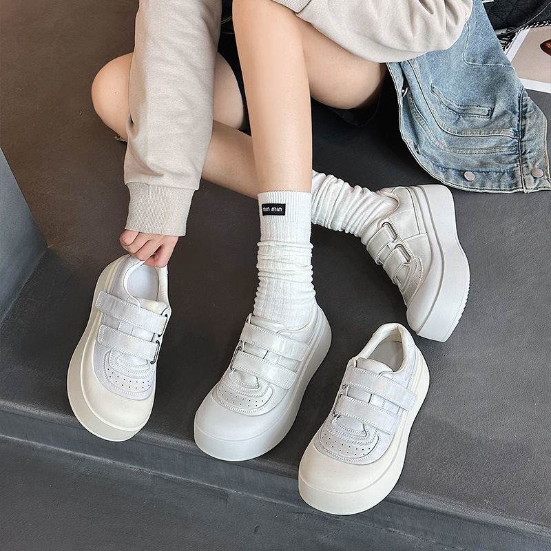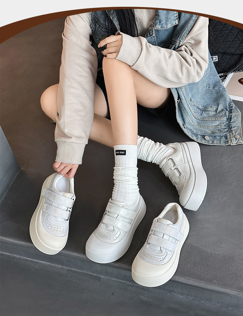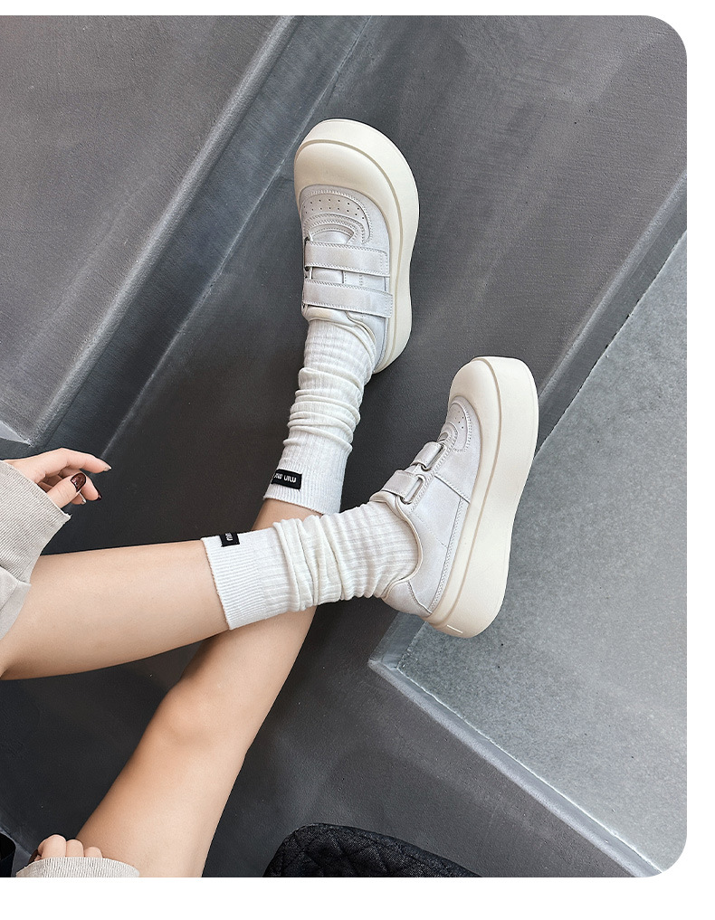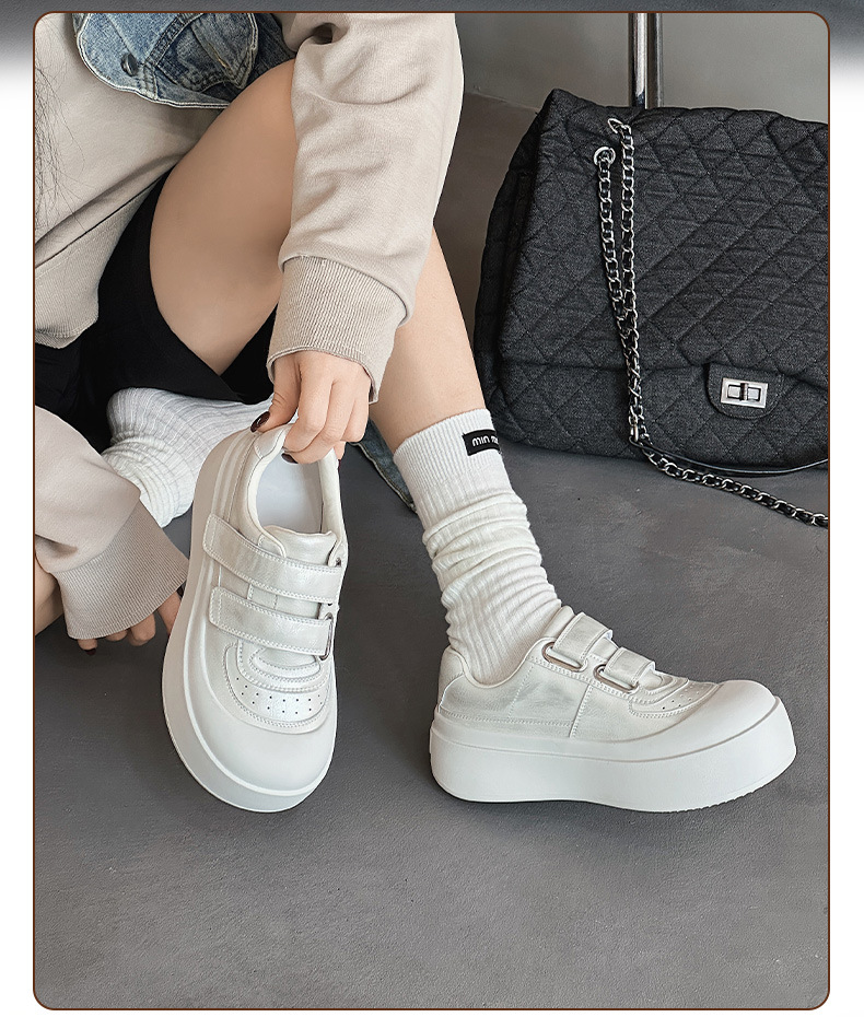 큰 머리 운동화 여성 인형 머리 캐주얼 신발 2025 새로운 모든 일치 못생긴 귀여운 빵 신발 진짜 가죽 두꺼운 단독 작은 흰색 신발 트렌디