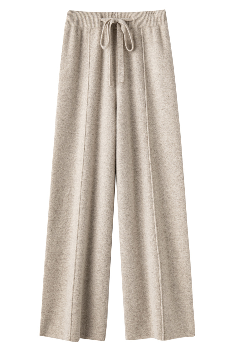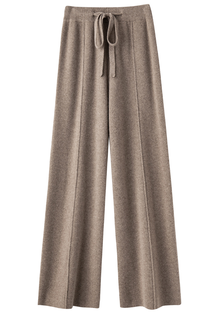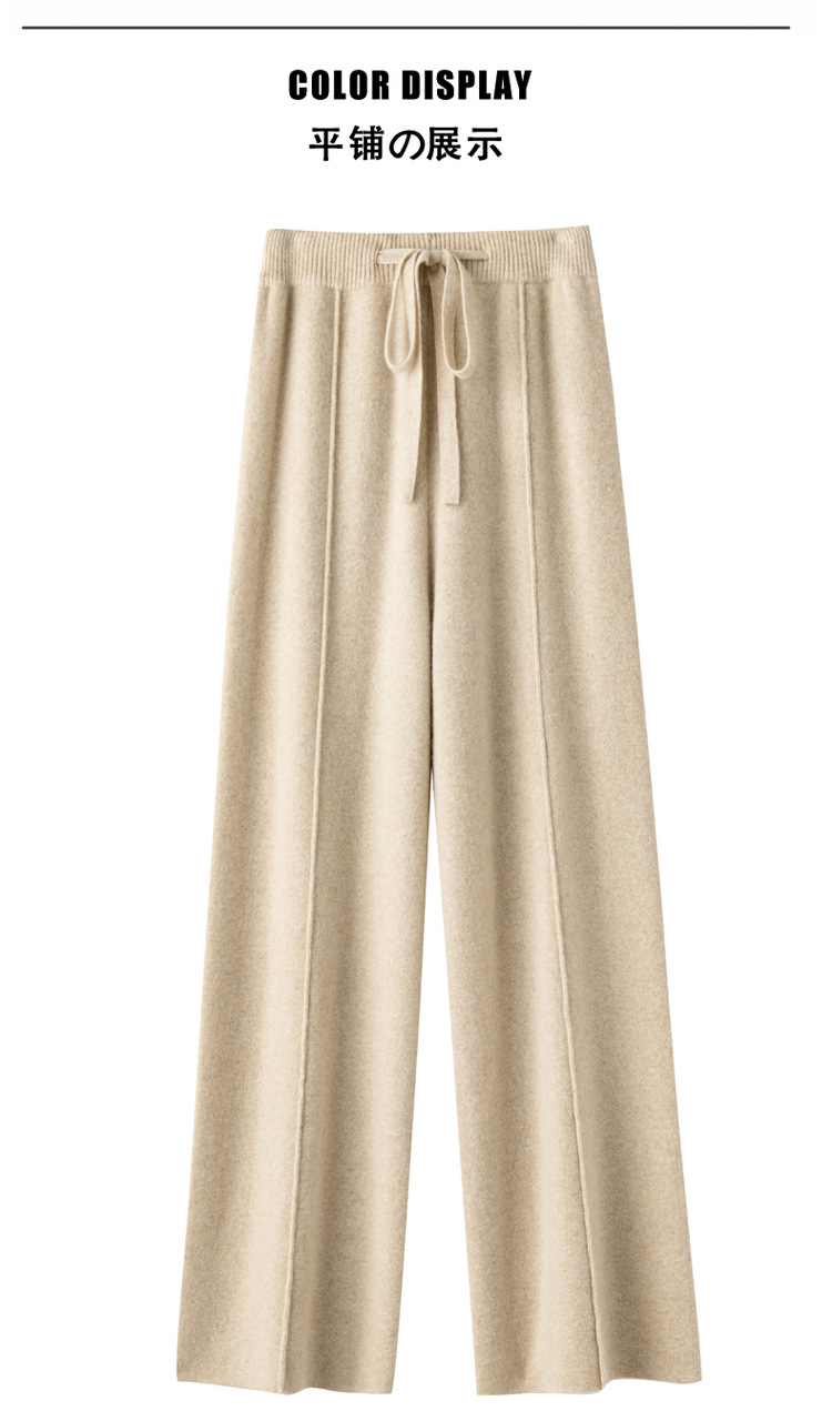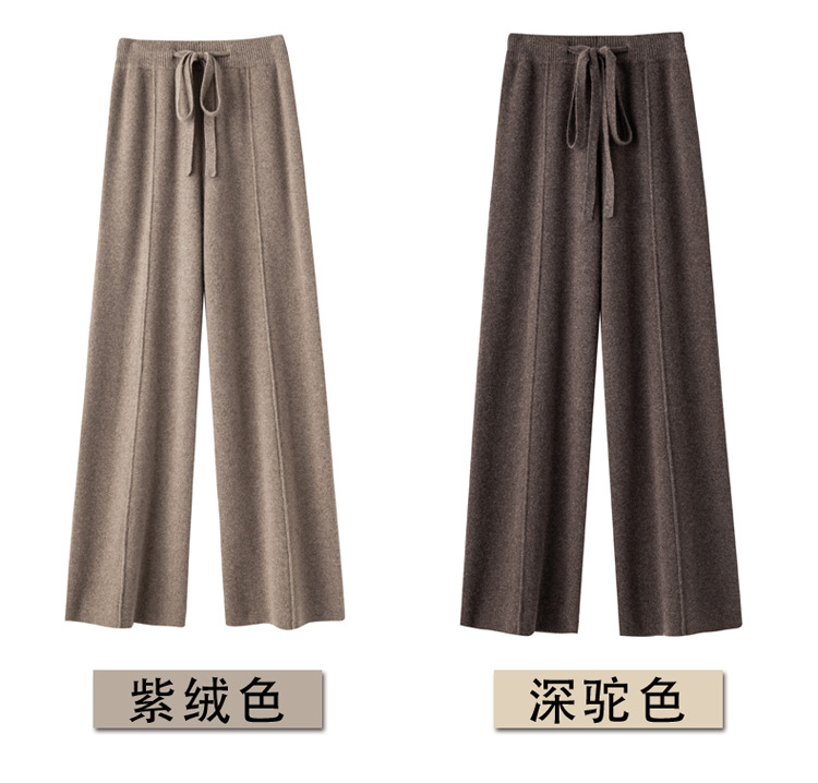 2024 가을과 겨울 여성의 순수한 양모 넓은 다리 바지 슬리밍 다리 긴 걸레 바지 느슨한 슬림핏 높은 허리 바지
