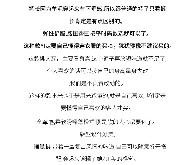 | 裤型 | 阔腿 | 裤长 | 长裤 |