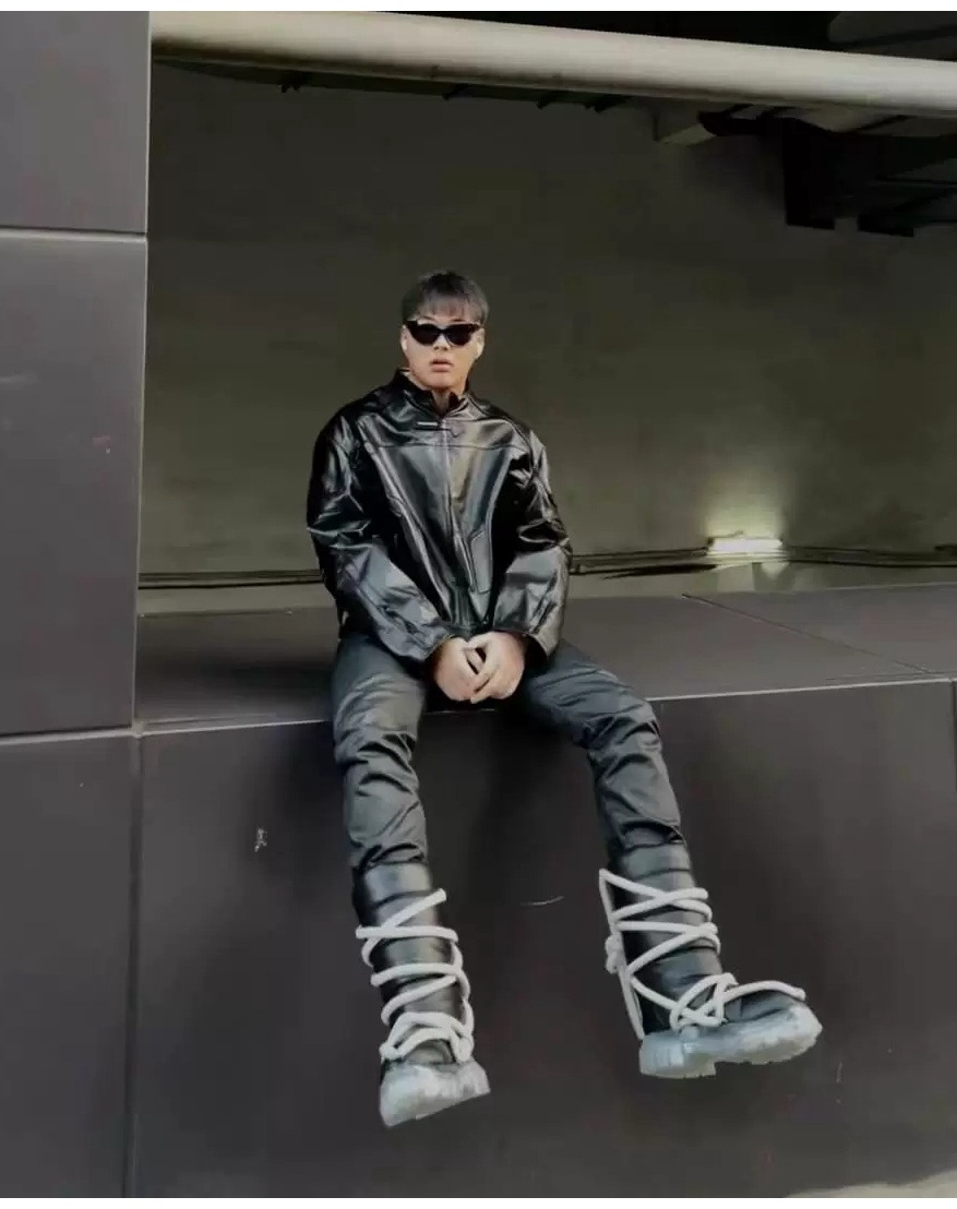 光滑的皮革边饰和系带环绕着宽大的廓形