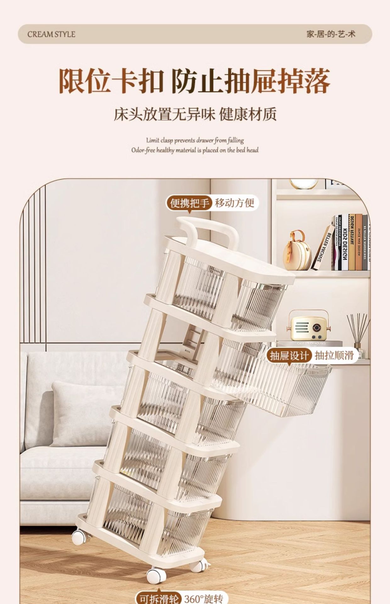 크림 스타일 서랍 카트 가정용 스낵 장난감 잡화 로커 수분 증거 및 방진 보관 캐비닛