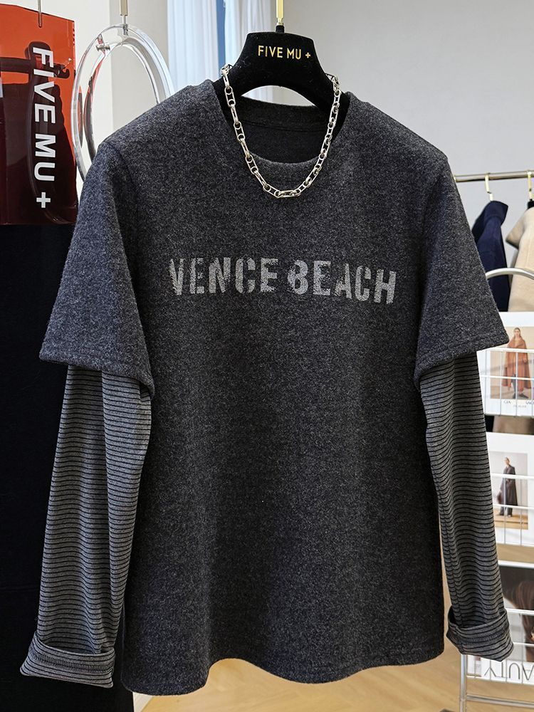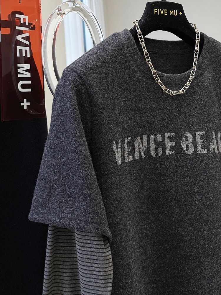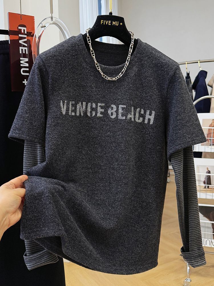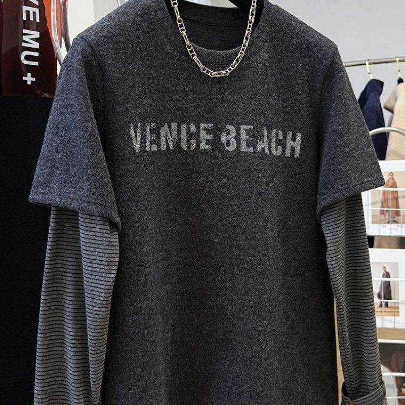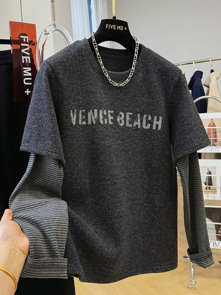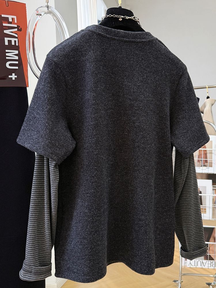 슈퍼 니스 샌딩 두껍게 바느질 가짜 투피스 긴팔 티셔츠베이스 셔츠 여성용 가을과 겨울 내복 탑 인스타그램