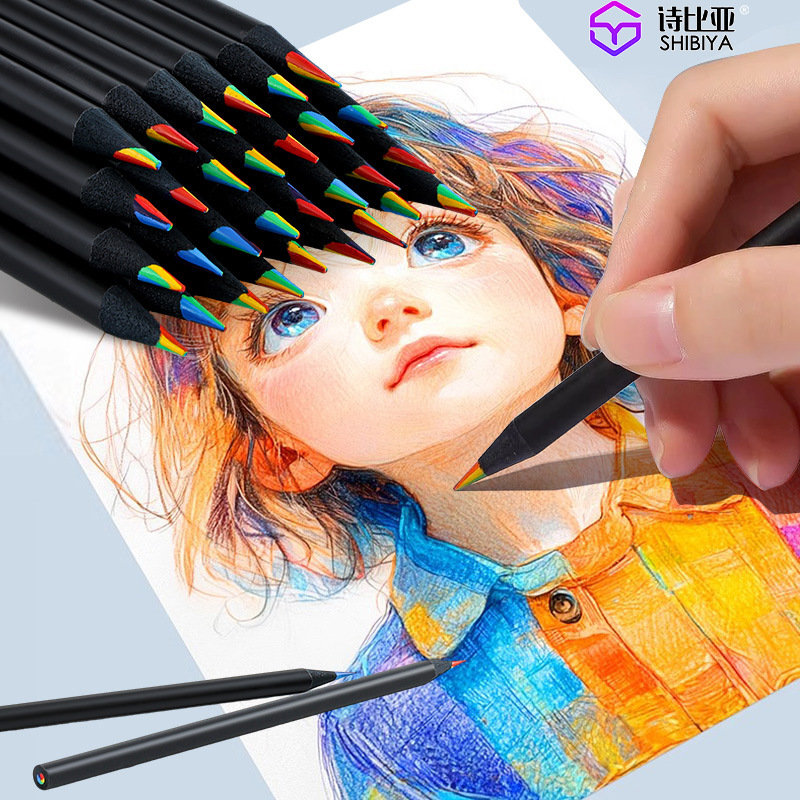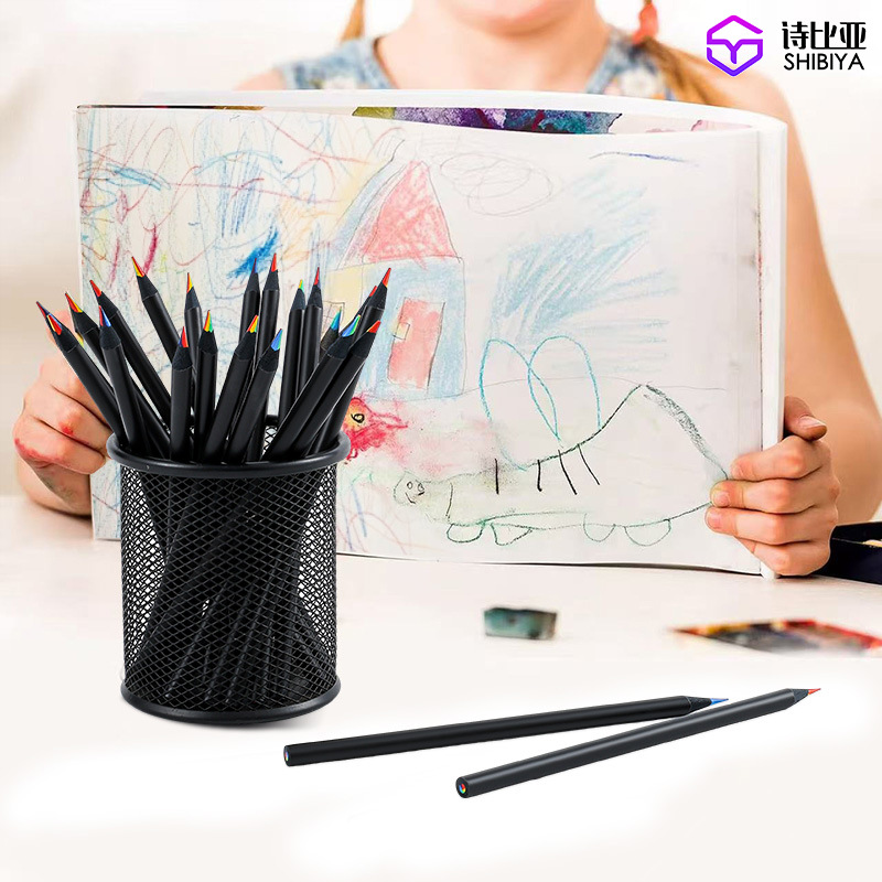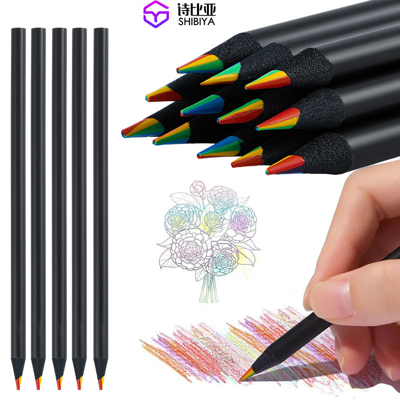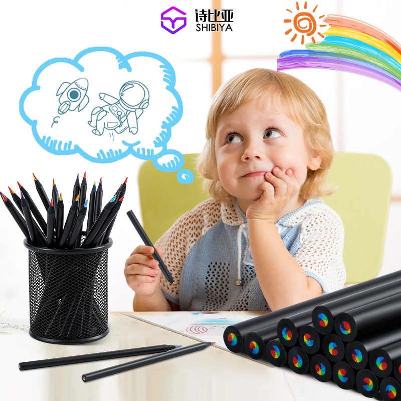 국경 검은 나무 무지개 펜 7 색 코어 7 색 무지개 코어 연필 여러 가지 빛깔의 어린이 창조적 인 그림 손으로 그린 낙서