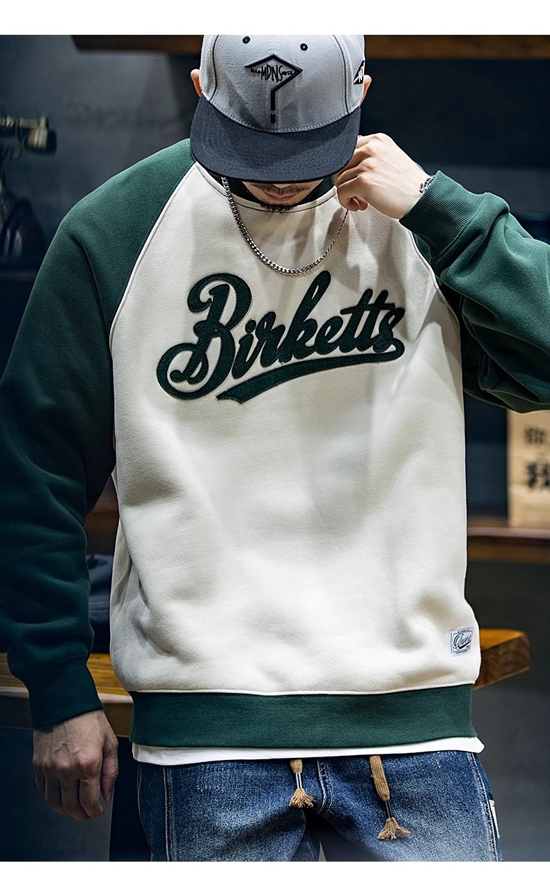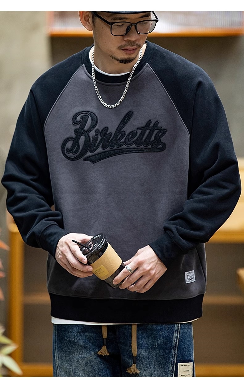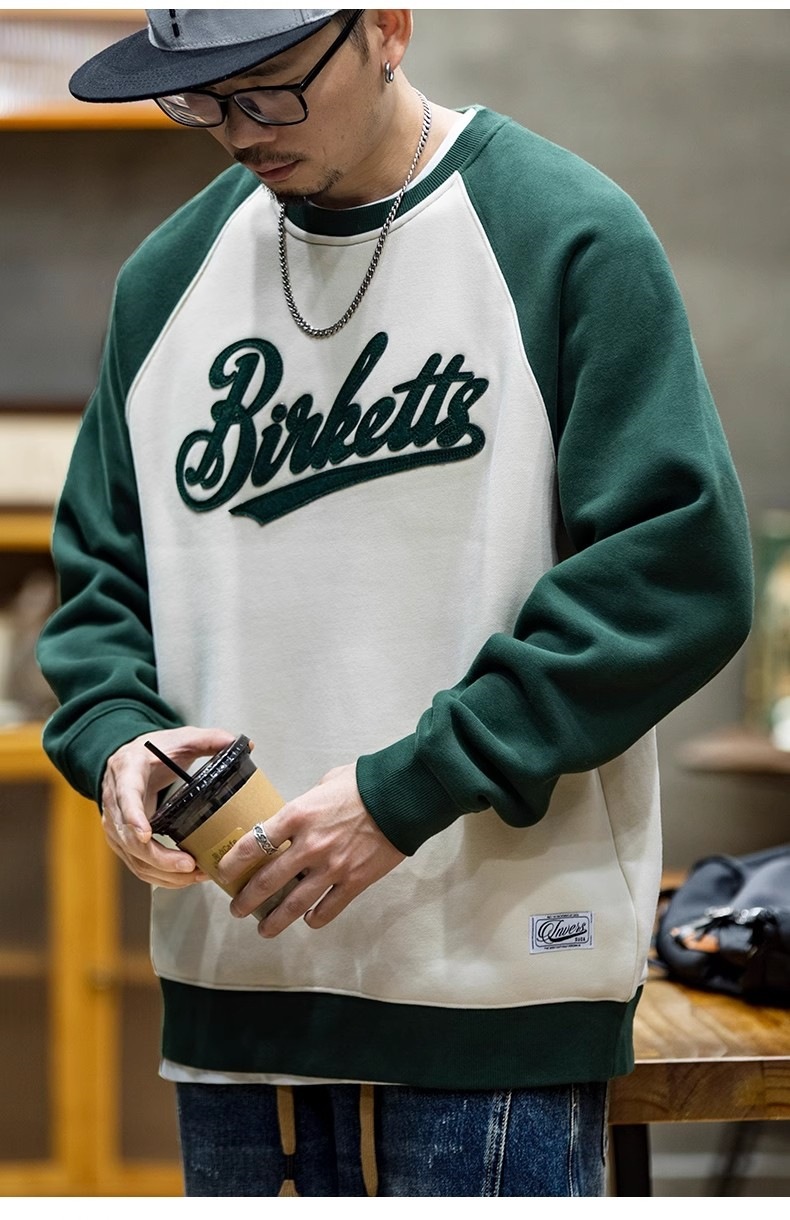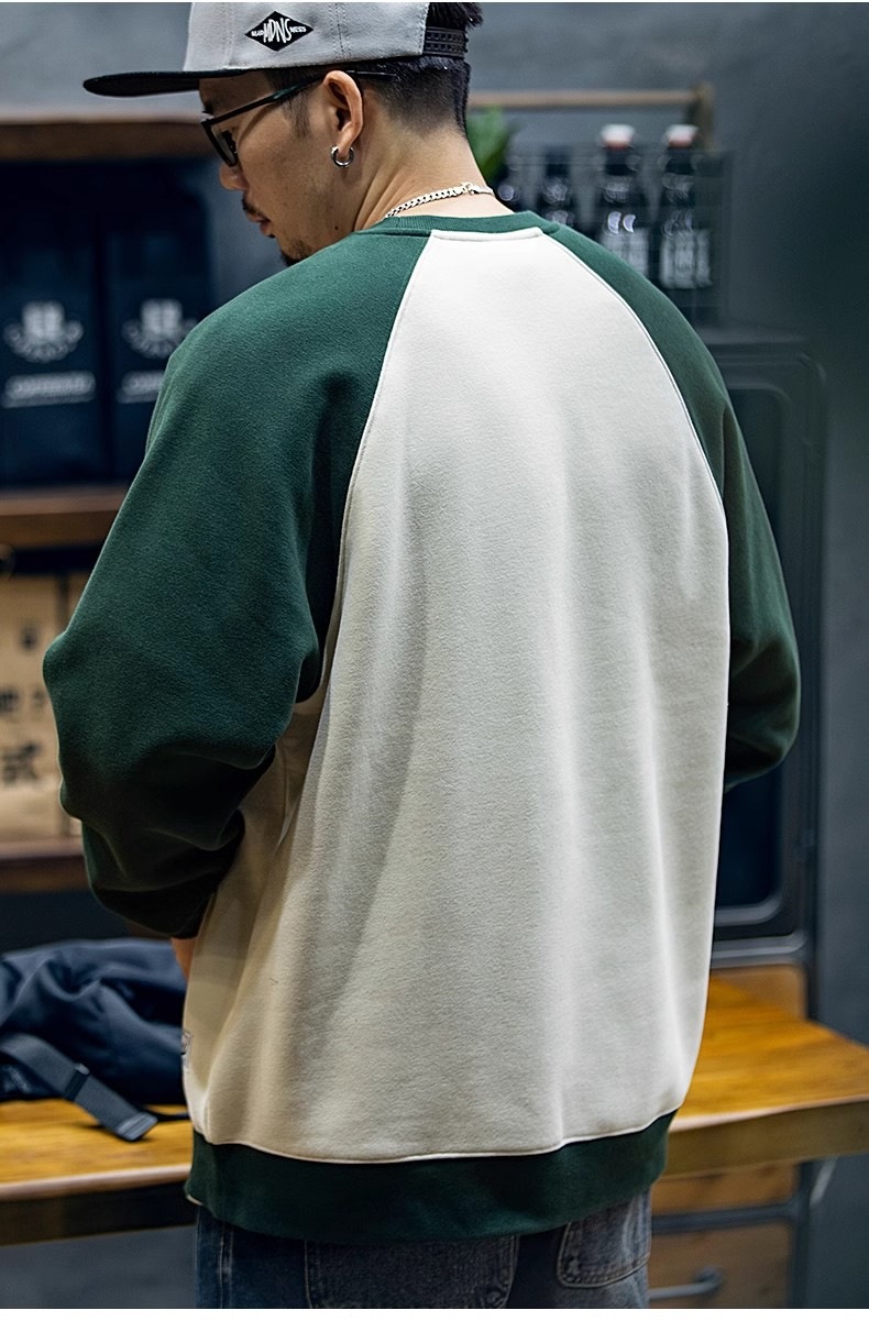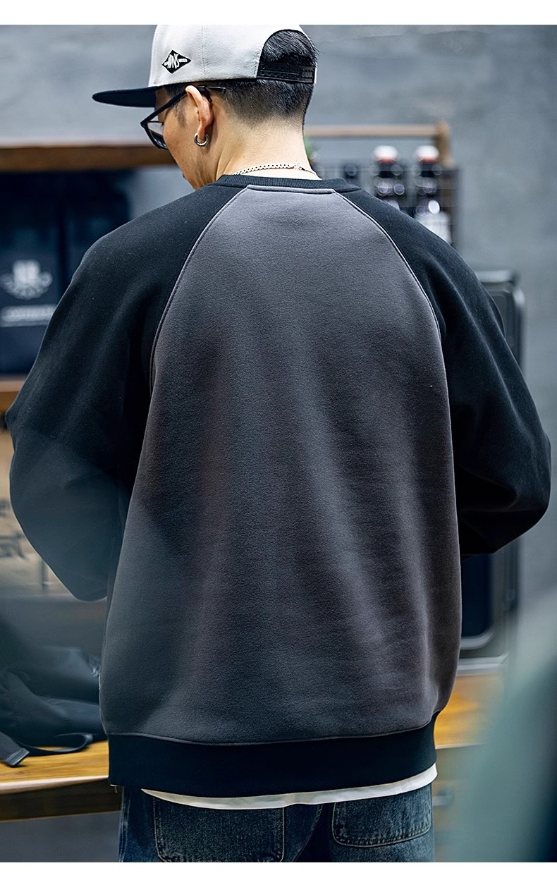 미국식 대비 색상 스티칭 크루 넥 기모 스웨트 셔츠 남성 가을 겨울 패션 브랜드 느슨한 캐주얼 플러스 사이즈 대형 롱 슬리브 탑