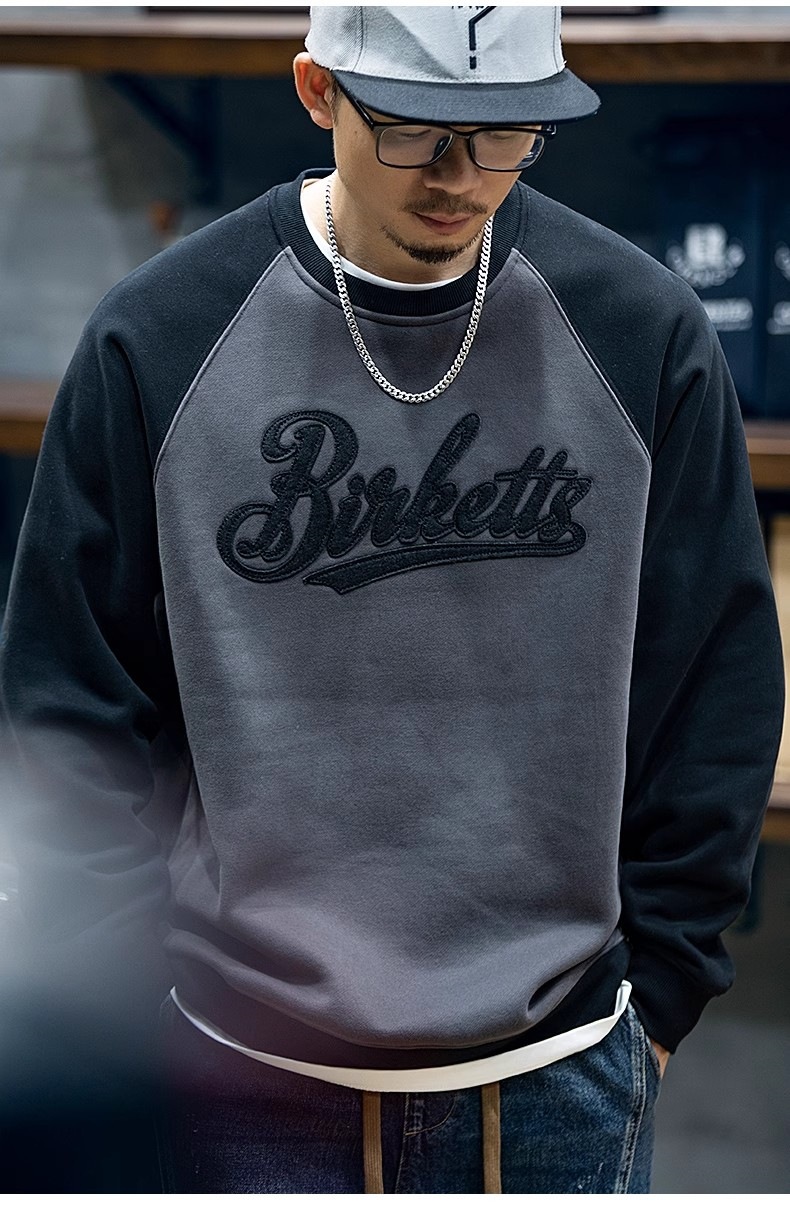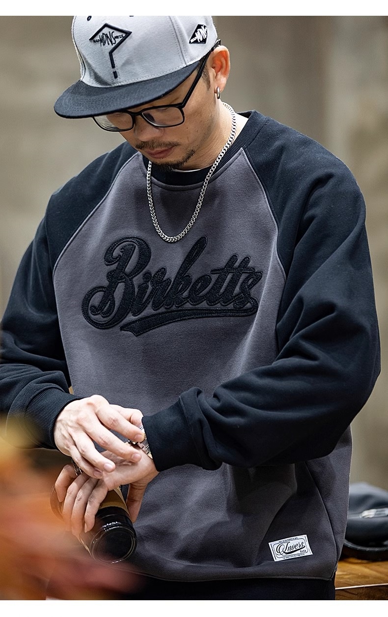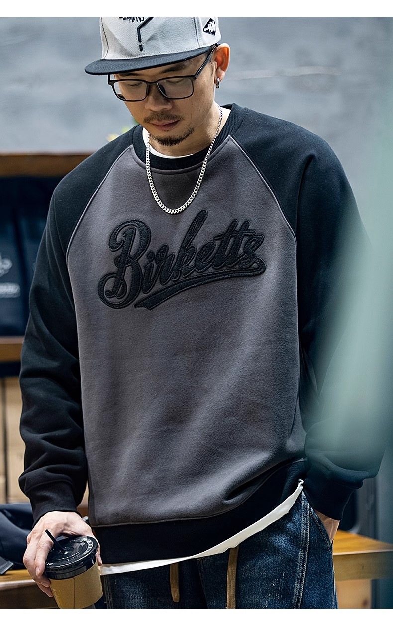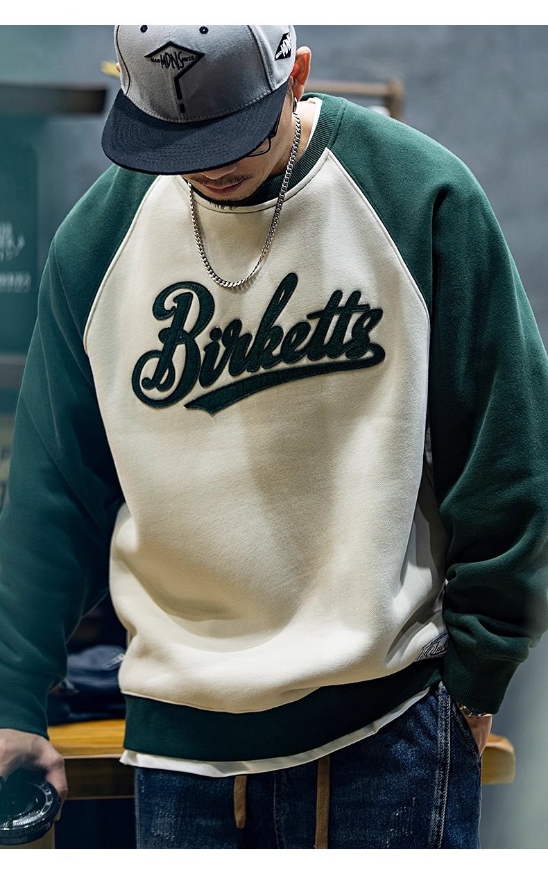 미국식 대비 색상 스티칭 크루 넥 기모 스웨트 셔츠 남성 가을 겨울 패션 브랜드 느슨한 캐주얼 플러스 사이즈 대형 롱 슬리브 탑