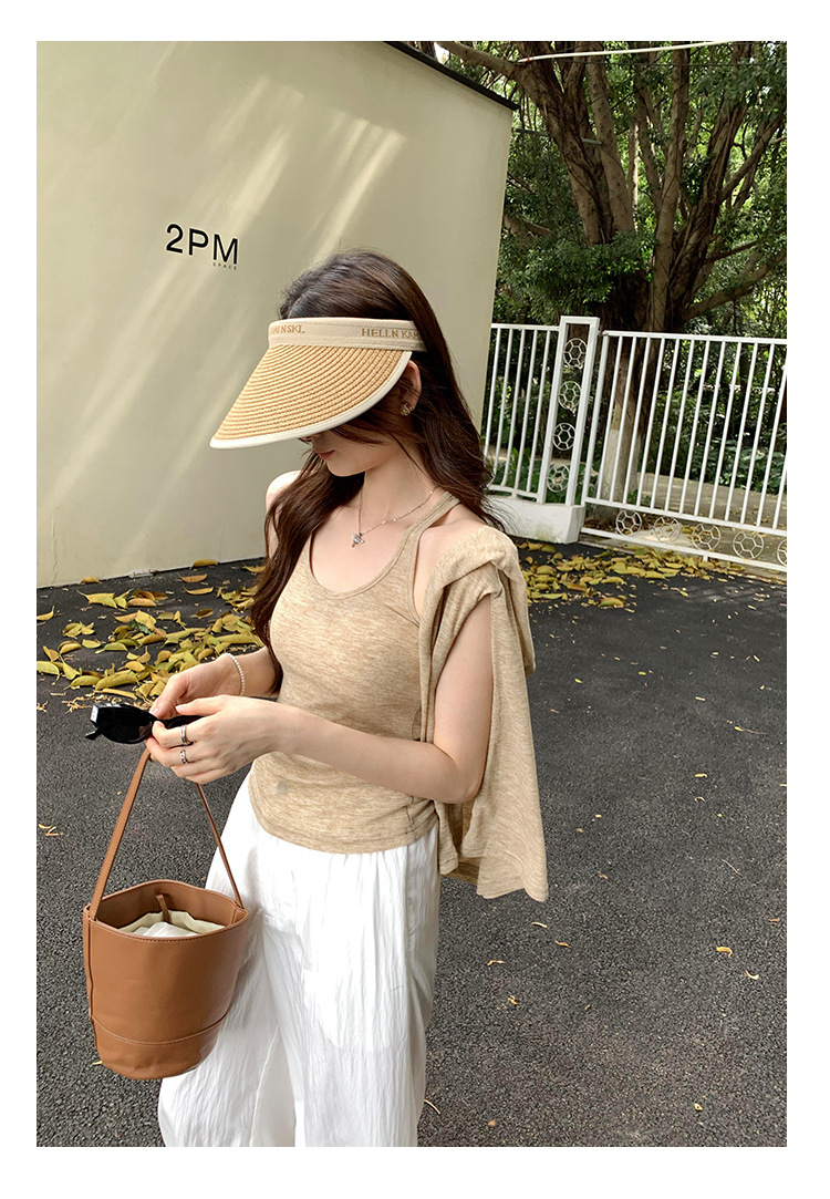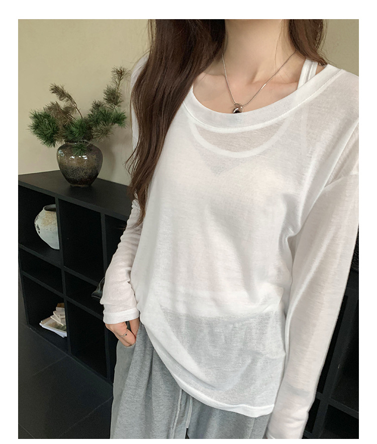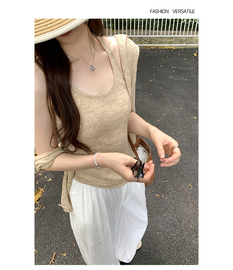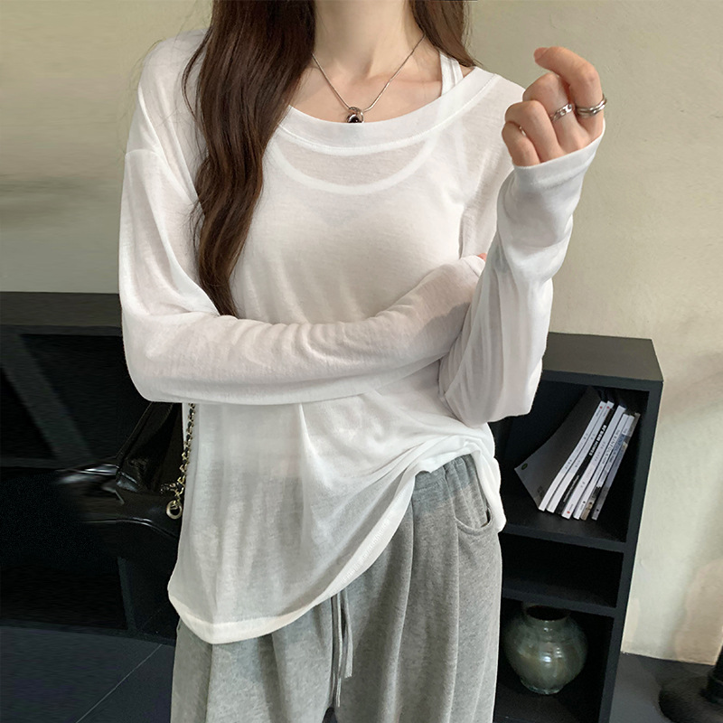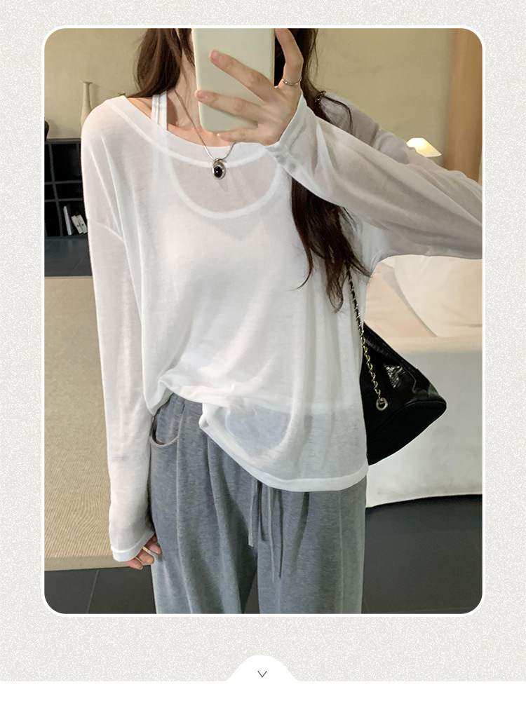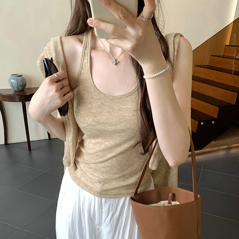 저렴한 여성 홍콩 스타일 레트로 조끼 느슨한 태양 보호 블라우스 티셔츠 투피스 세트 여성 봄 2025 새로운 스타일의 세련된 탑