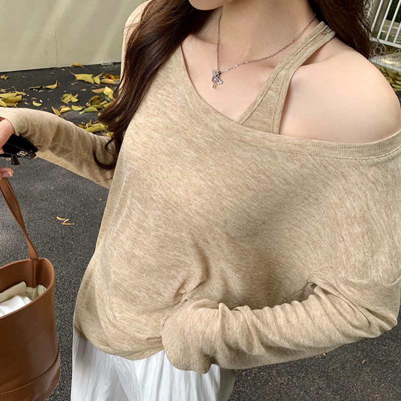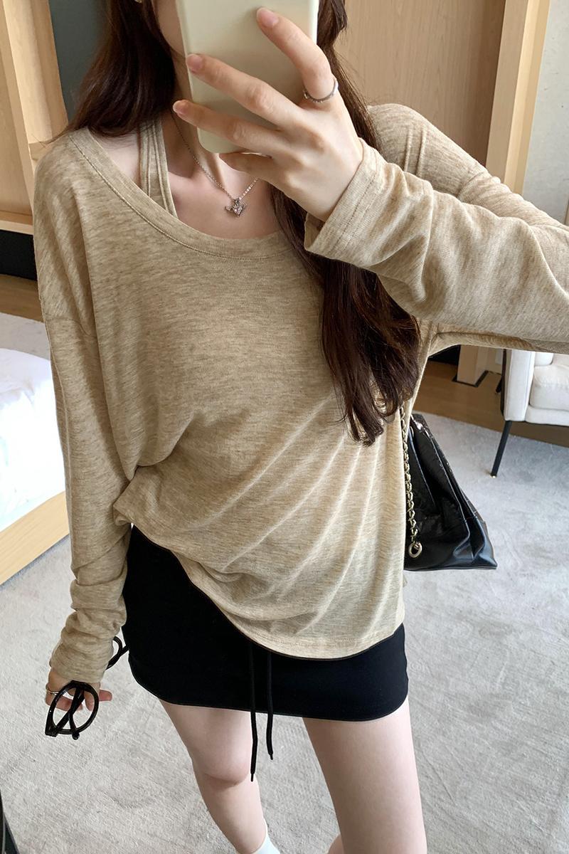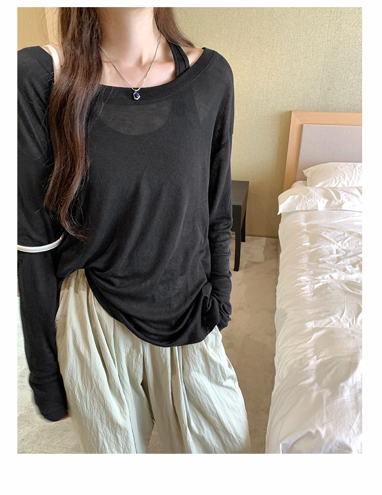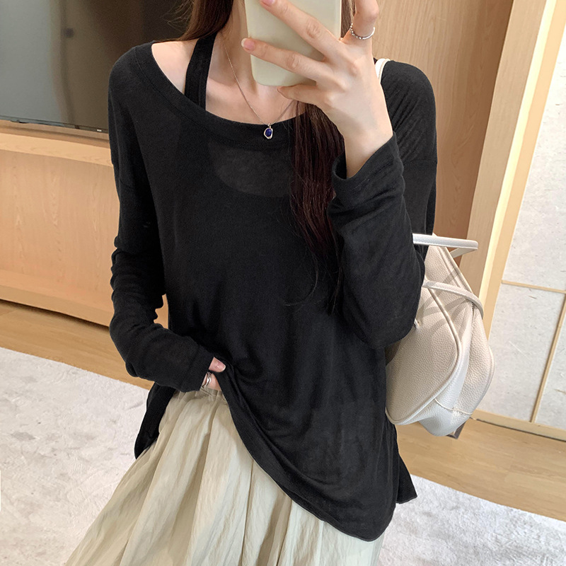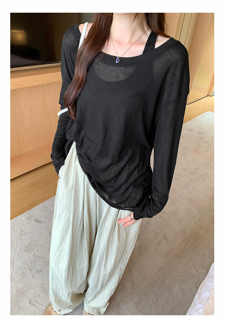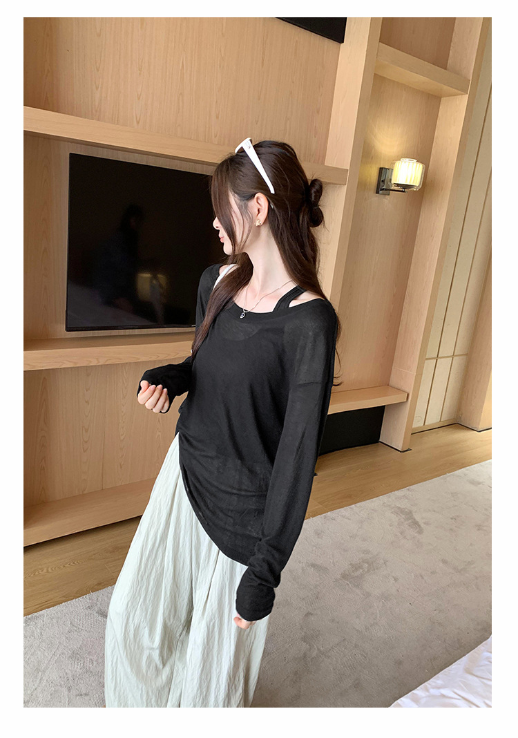 저렴한 여성 홍콩 스타일 레트로 조끼 느슨한 태양 보호 블라우스 티셔츠 투피스 세트 여성 봄 2025 새로운 스타일의 세련된 탑