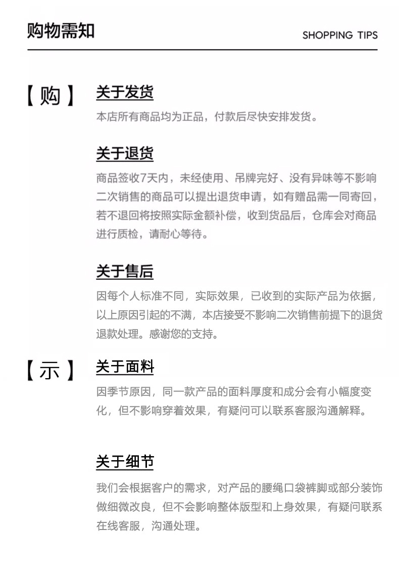 | 颜色 | 九分款-杏灰(推荐身高160-170), 标准款-杏灰(推荐身高170-185), 加长款-杏灰(推荐身高185以上), 九分款-黑色(推荐身高160-170), 标准款-黑色(推荐身高170-185), 加长款-黑色(推荐身高185以上), 九分款-白灰(推荐身高160-170), 标准款-白灰(推荐身高170-185), 加长款-白灰(推荐身高185以上), 九分款-高级灰(推荐身高160-170), 标准款-高级灰(推荐身高170-185), 加长款-高级灰(推荐身高185以上), 九分款-杏灰加绒(推荐身高160-170), 标准款-杏灰加绒(推荐身高170-185), 加长款-杏灰加绒(推荐身高185以上), 九分款-黑色加绒(推荐身高160-170), 标准款-黑色加绒(推荐身高170-185), 加长款-黑色加绒(推荐身高185以上), 九分款-白灰加绒(推荐身高160-170), 标准款-白灰加绒(推荐身高170-185), 加长款-白灰加绒(推荐身高185以上), 九分款-高级灰加绒(推荐身高160-170), 标准款-高级灰加绒(推荐身高170-185), 加长款-高级灰加绒(推荐身高185以上) | 尺码 | M(95-110)斤, L(110-125)斤, XL(125-145)斤, 2XL(145-165)斤, 3XL(165-185)斤, 4XL(185-205)斤 |