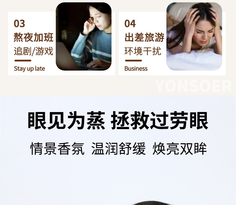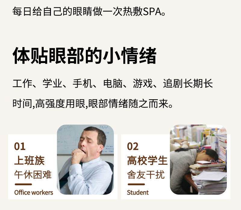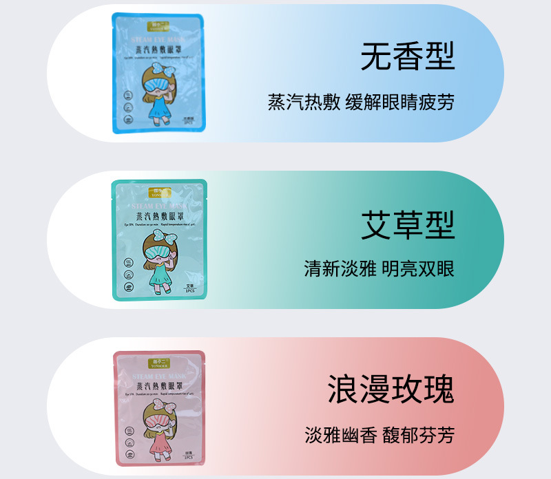 | 风格 | 清新系列 | 功能 | 蒸汽眼罩缓解眼疲劳热敷护眼罩遮光发热眼贴一次性加热蒸气罩助眠 |