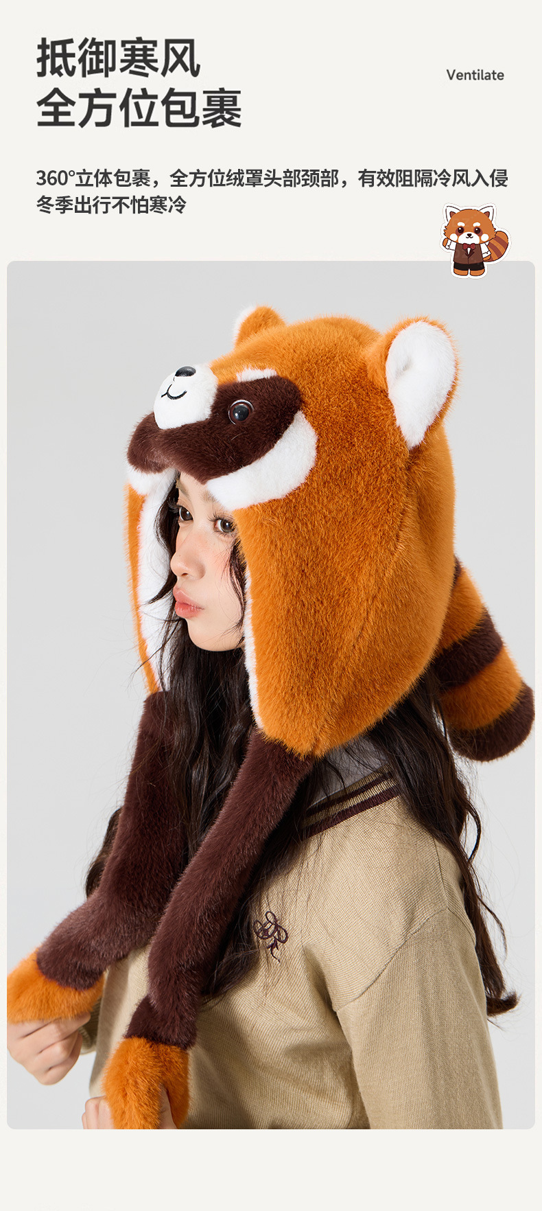 모자 여성 봉제 인형 만화 너구리는 귀 바람 모자 귀여운 모피 차가운 귀 모자 도매를 움직입니다.