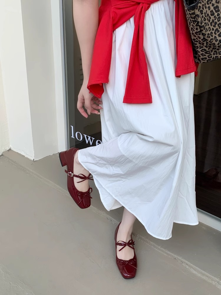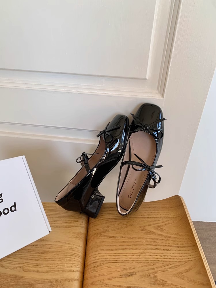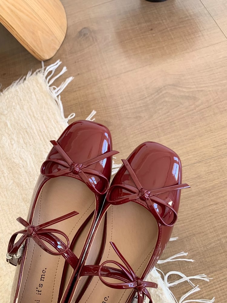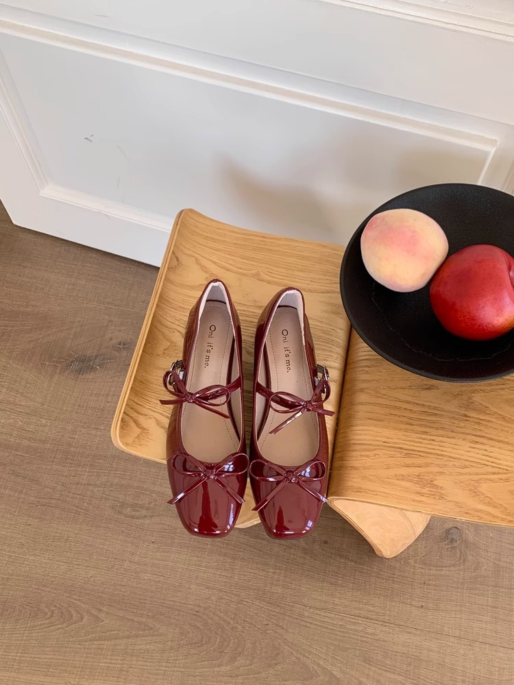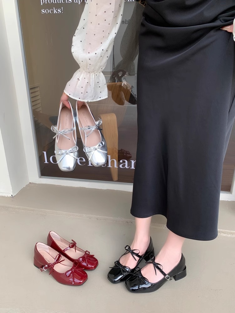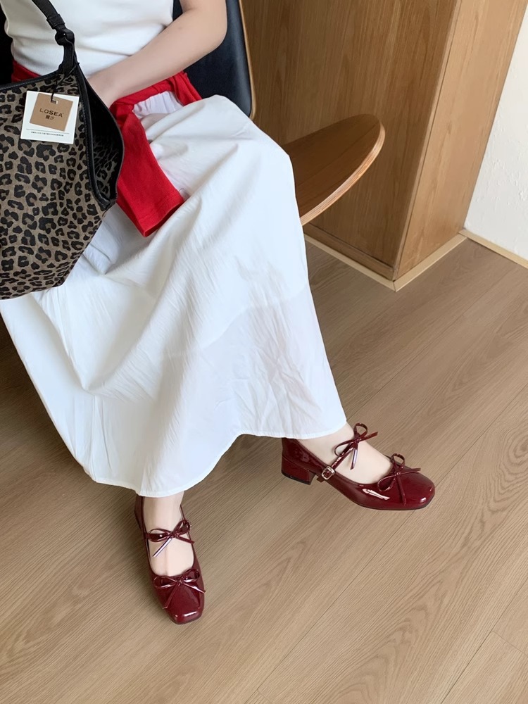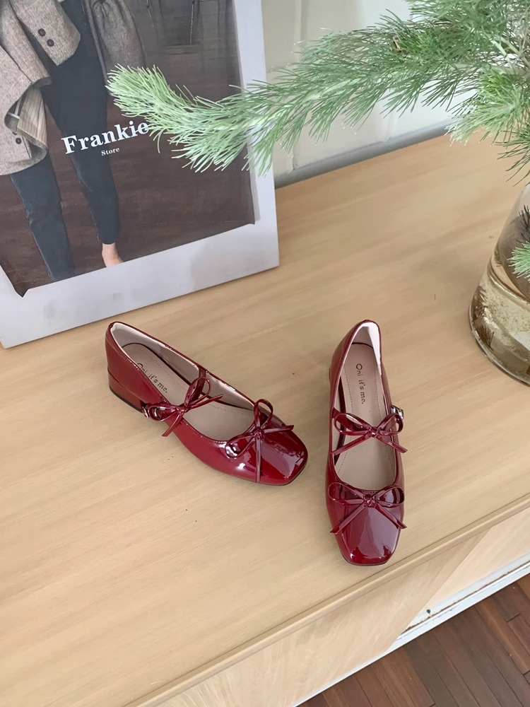 자기 보유 버전! 프랑스 레드 발레 메리 제인 신발 여성 청키 힐 특허 가죽 밀크 신발 빈티지 얕은 탑 스퀘어 발가락 신발