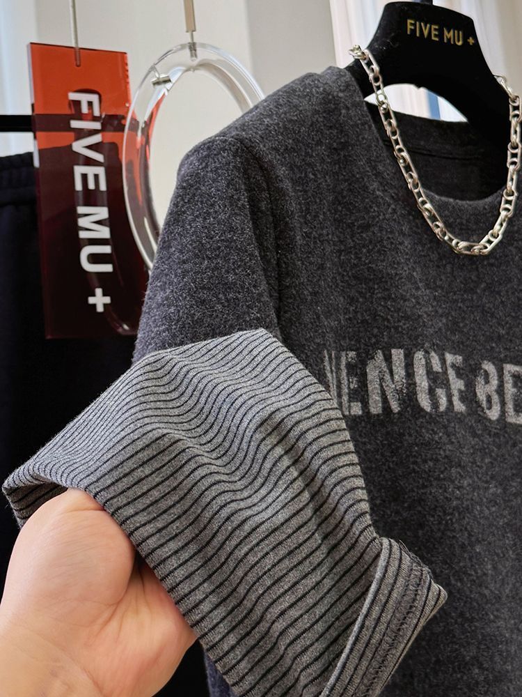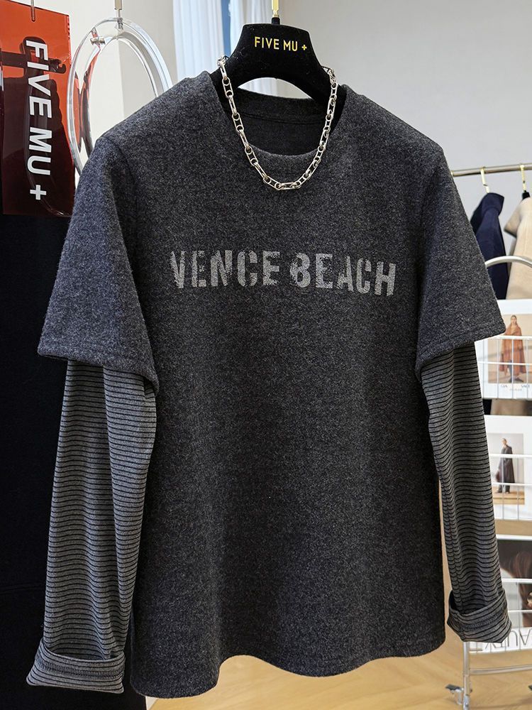 슈퍼 니스 샌딩 두껍게 바느질 가짜 투피스 긴팔 티셔츠베이스 셔츠 여성용 가을과 겨울 내복 탑 인스타그램