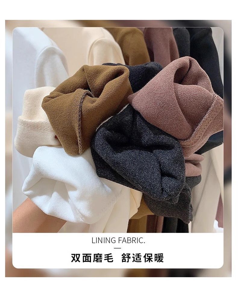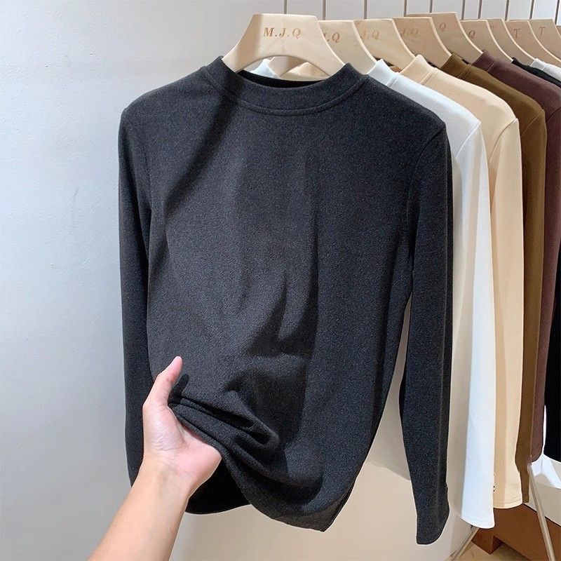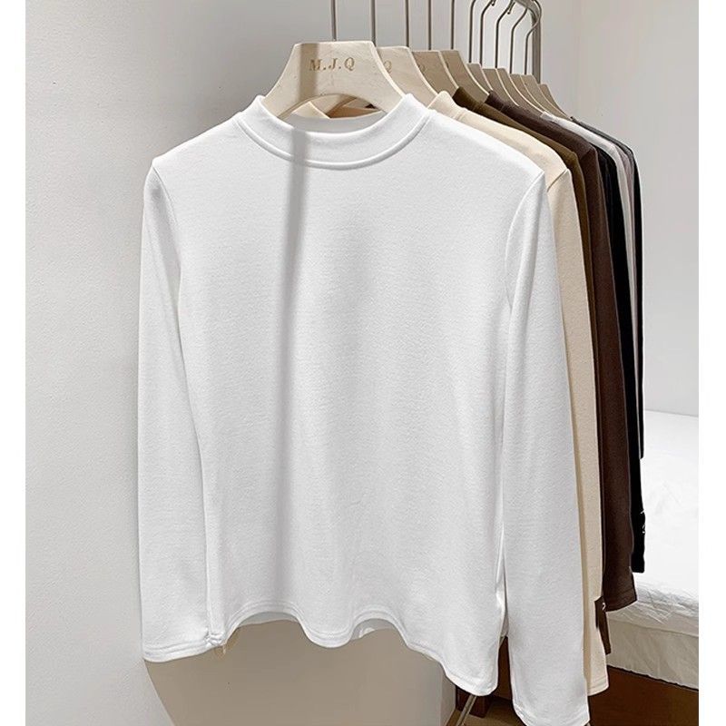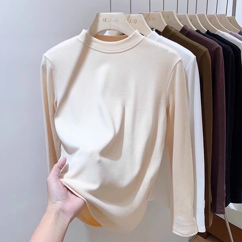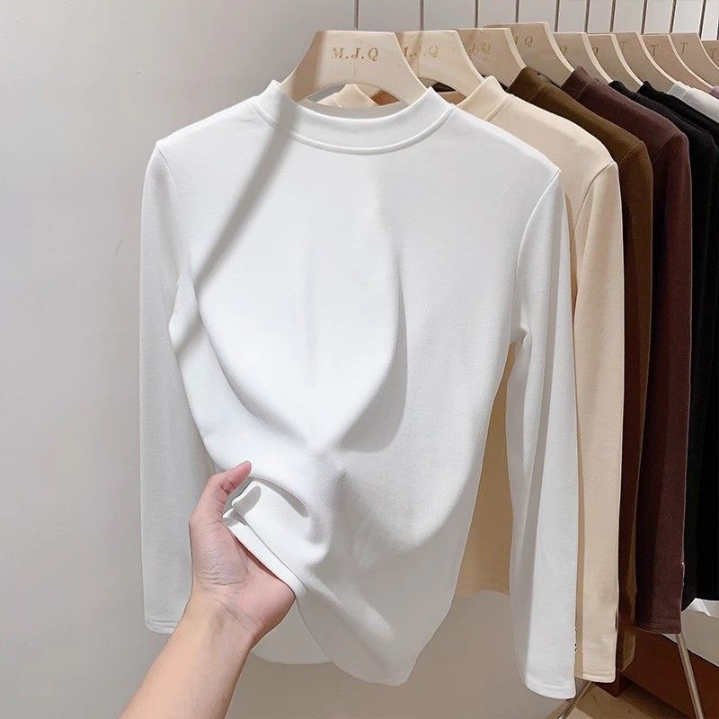 양면 벨벳 반 높은 목 두꺼운 따뜻한 베이스 셔츠 여성의 봄과 가을 새로운 긴 소매 샌딩 티셔츠 내부 탑