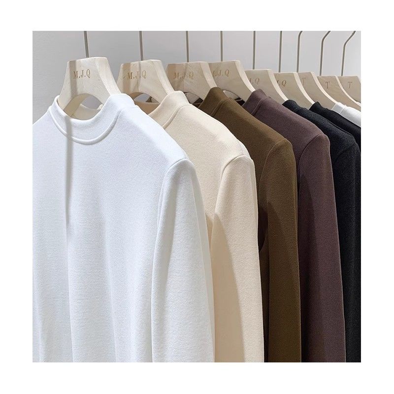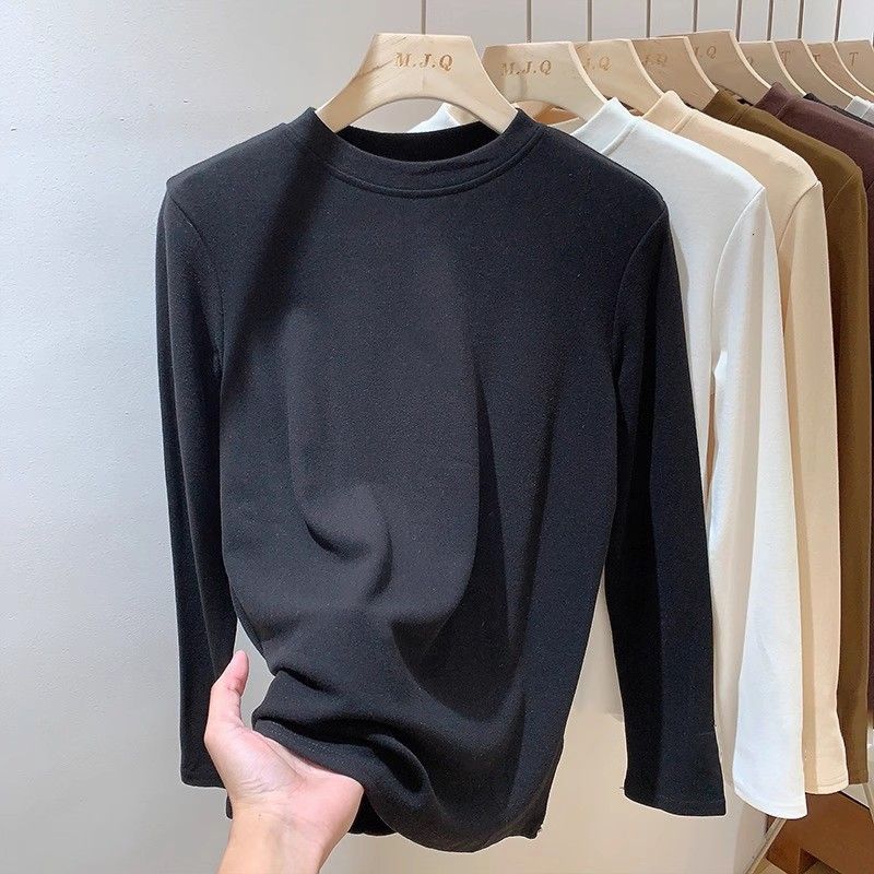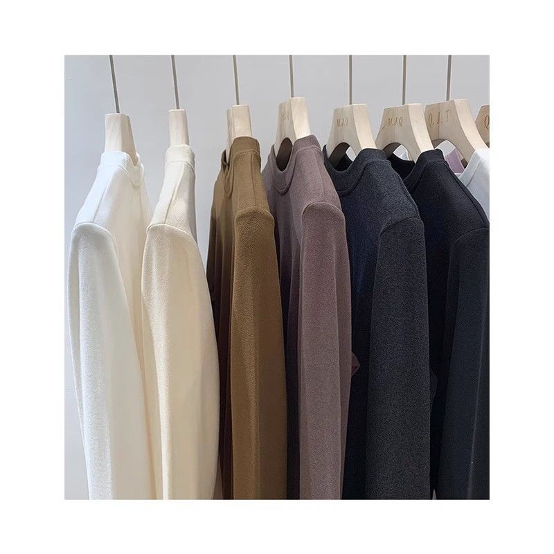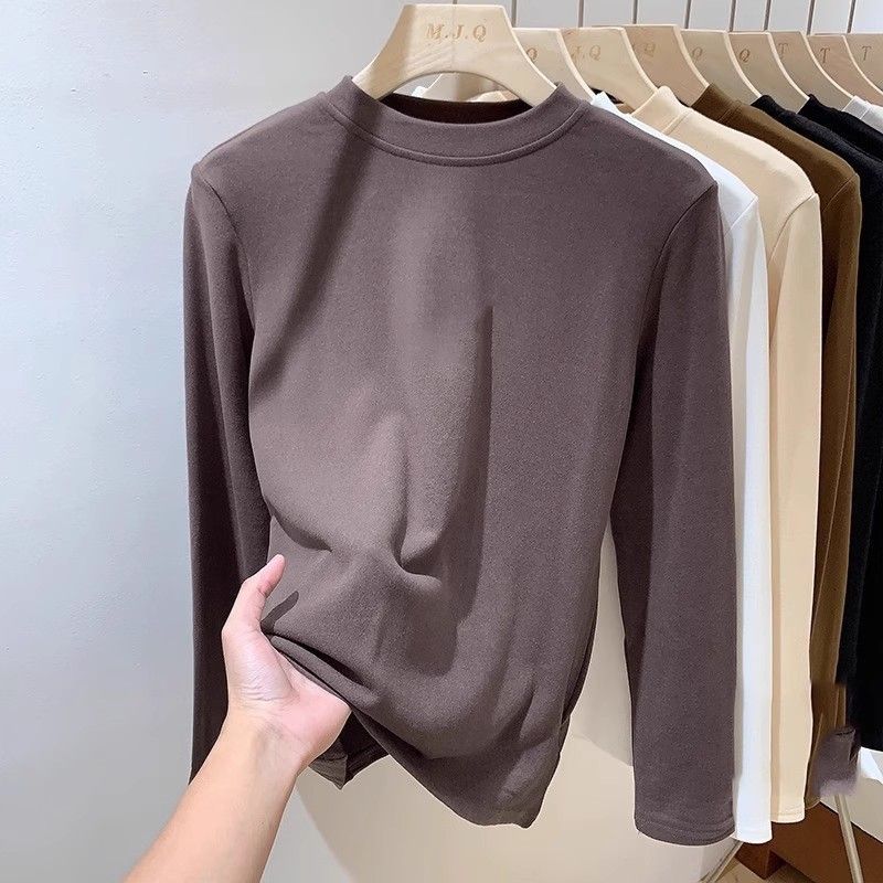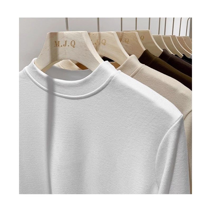 양면 벨벳 반 높은 목 두꺼운 따뜻한 베이스 셔츠 여성의 봄과 가을 새로운 긴 소매 샌딩 티셔츠 내부 탑