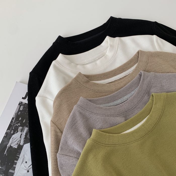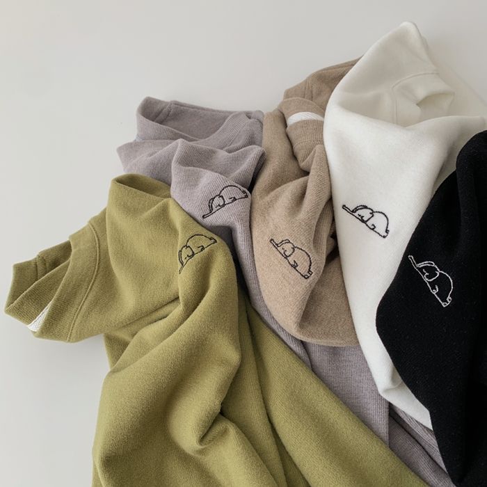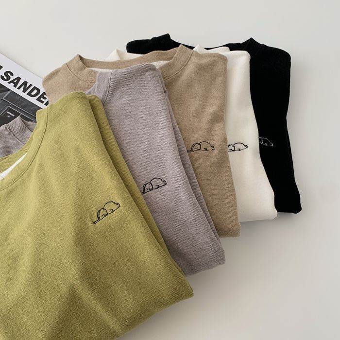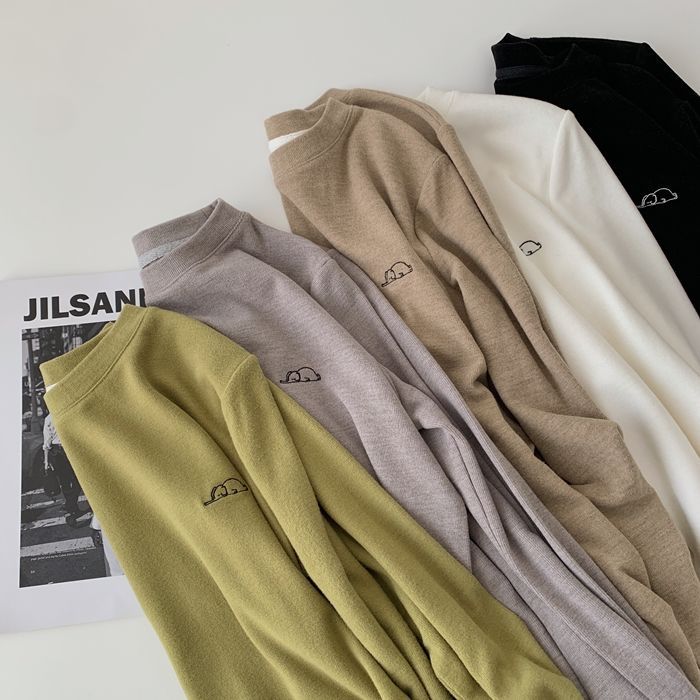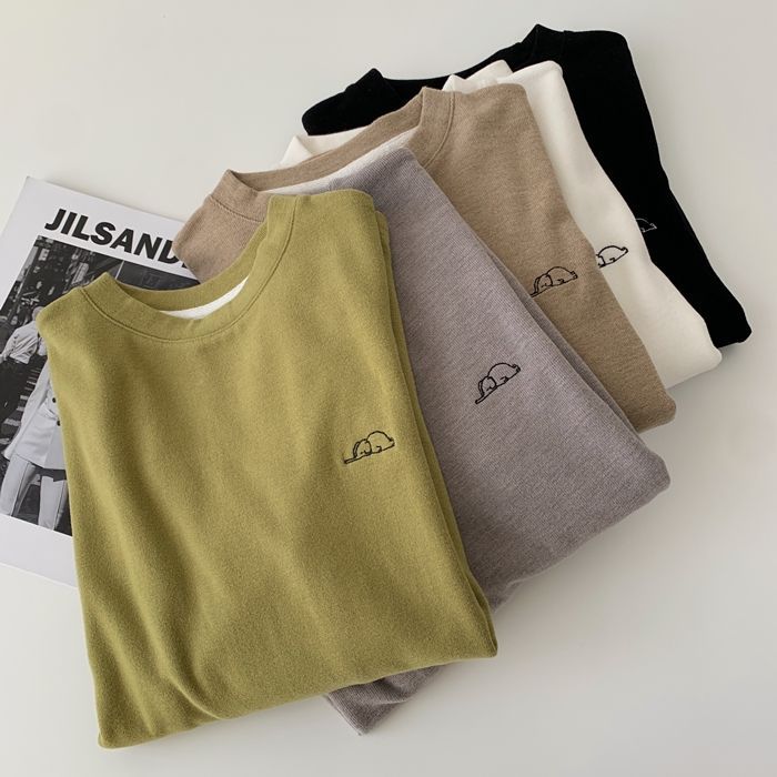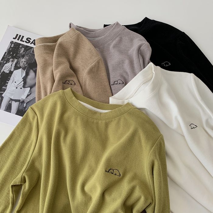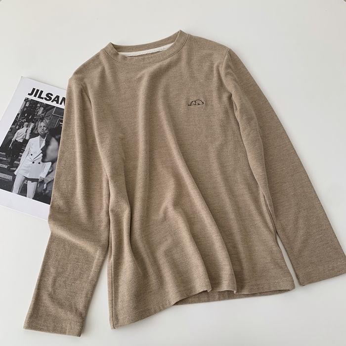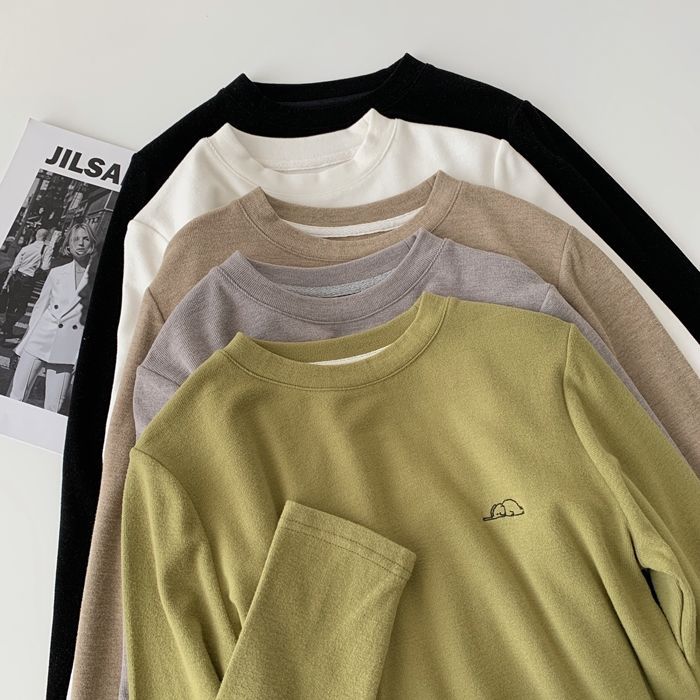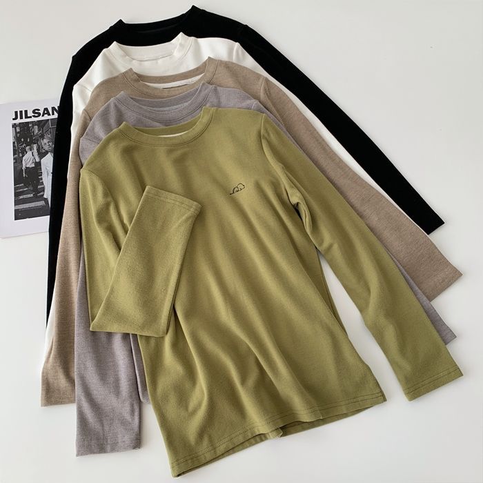 자수 코끼리 ~ 착용하기 좋은! 피부 친화적 인 소프트 왁스 올 매치 라운드 넥 긴팔 티셔츠 여성용 양면 벨벳 내베이스 셔츠