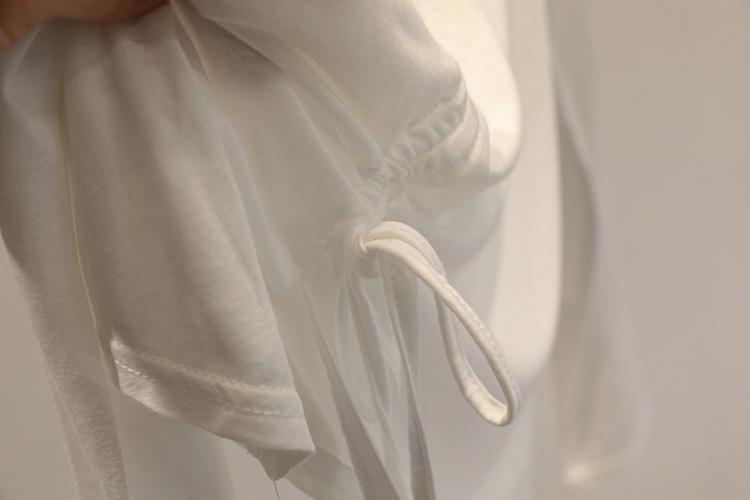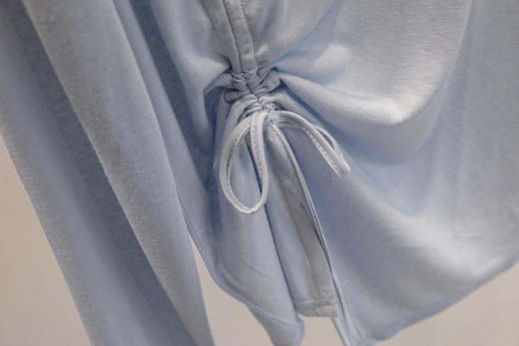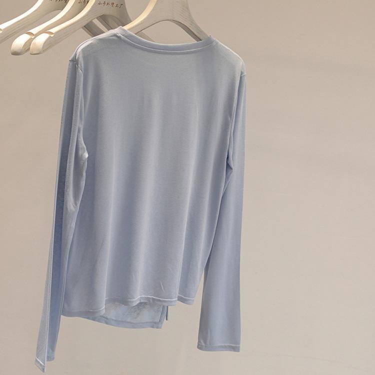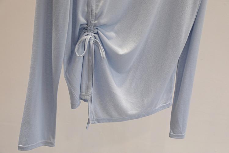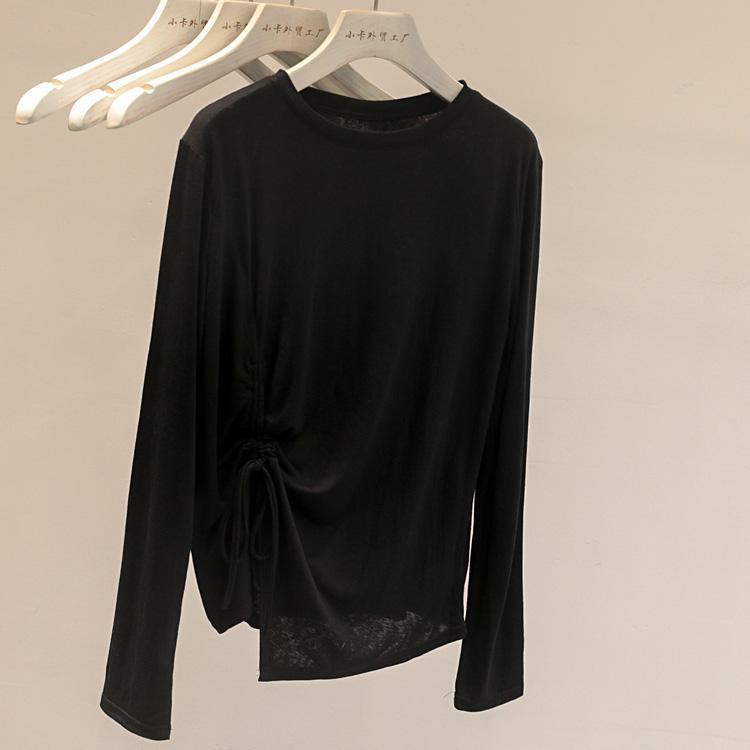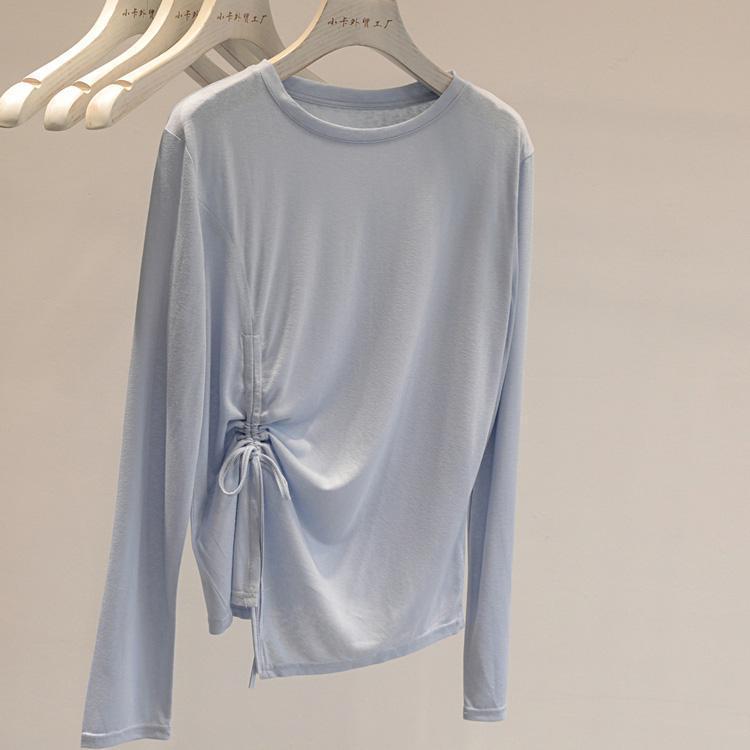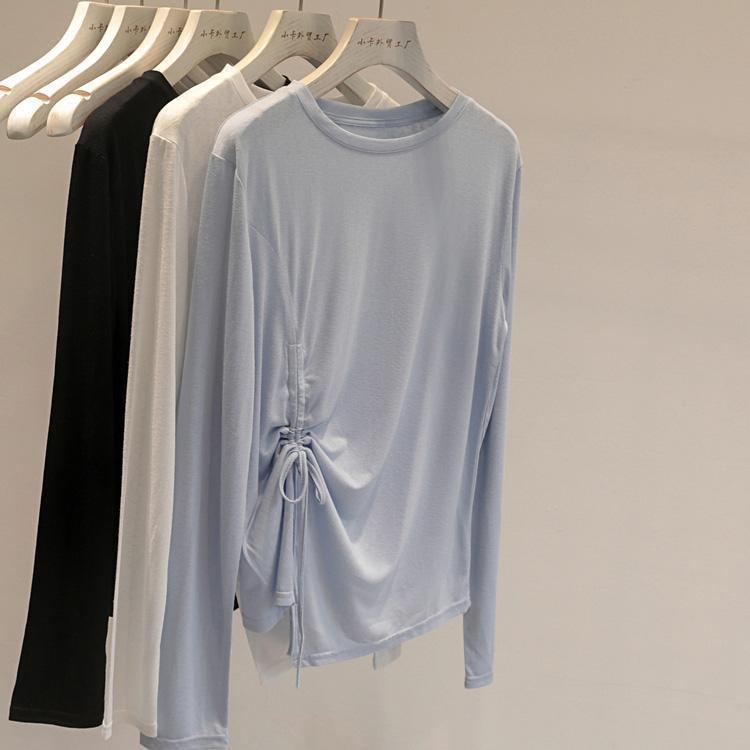 한국의 여동생! 경량 쿨 슬럽 코튼 드로우 스트링 긴팔 티셔츠 여성용 트렌디 한 간단한 솔리드 스크린 블라우스