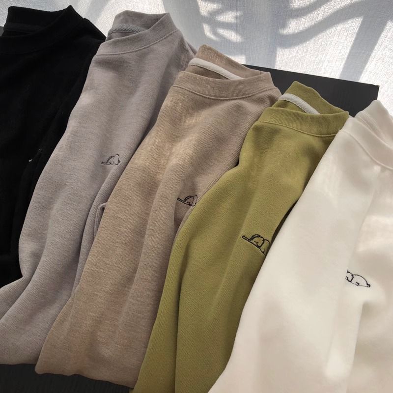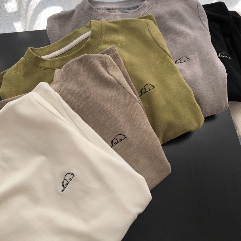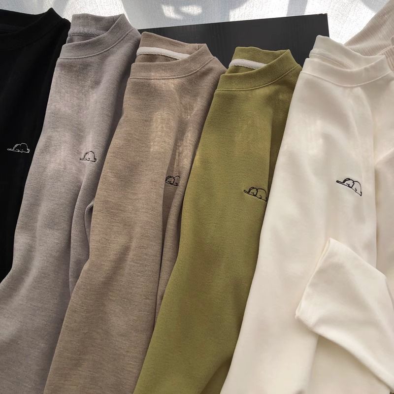 양면 벨벳 코끼리 수 놓은 긴팔 티셔츠 여성용 2025 새로운 세련된 라운드 넥 루즈 올매치 베이스 셔츠