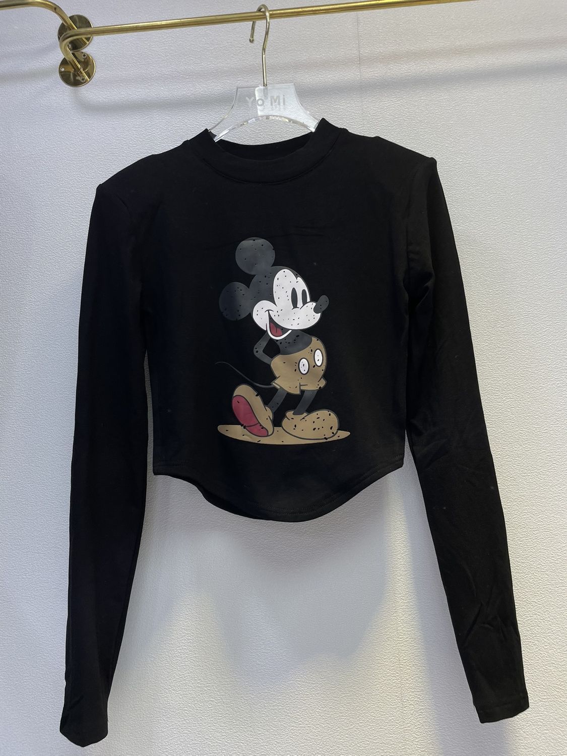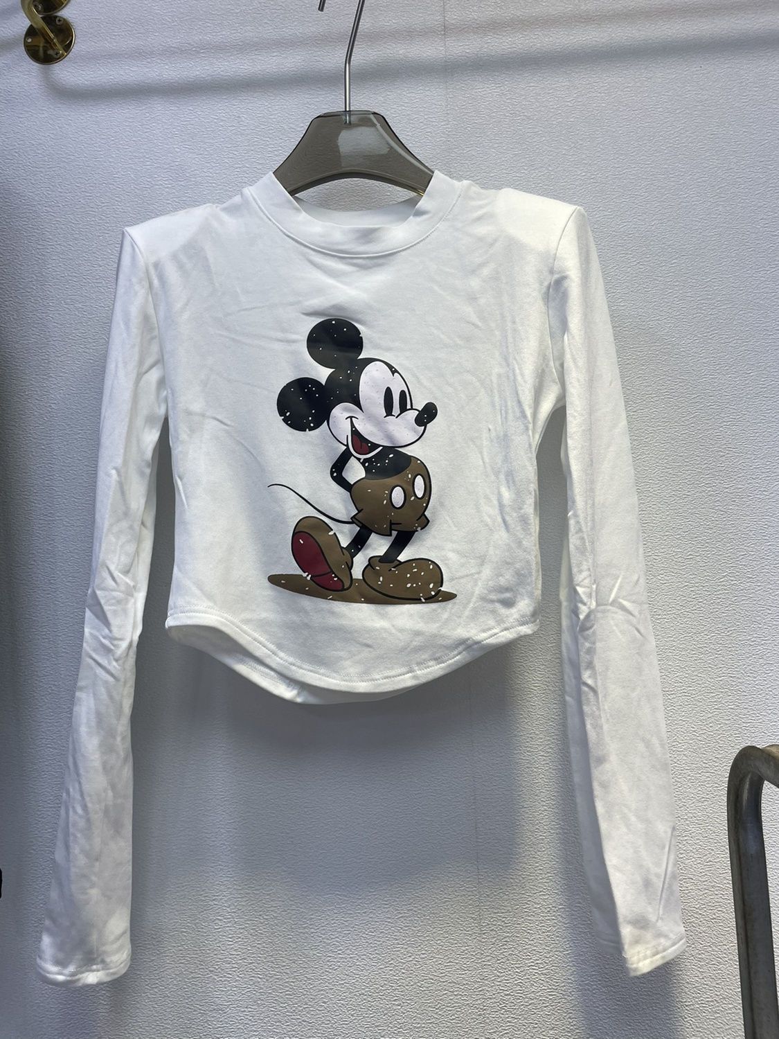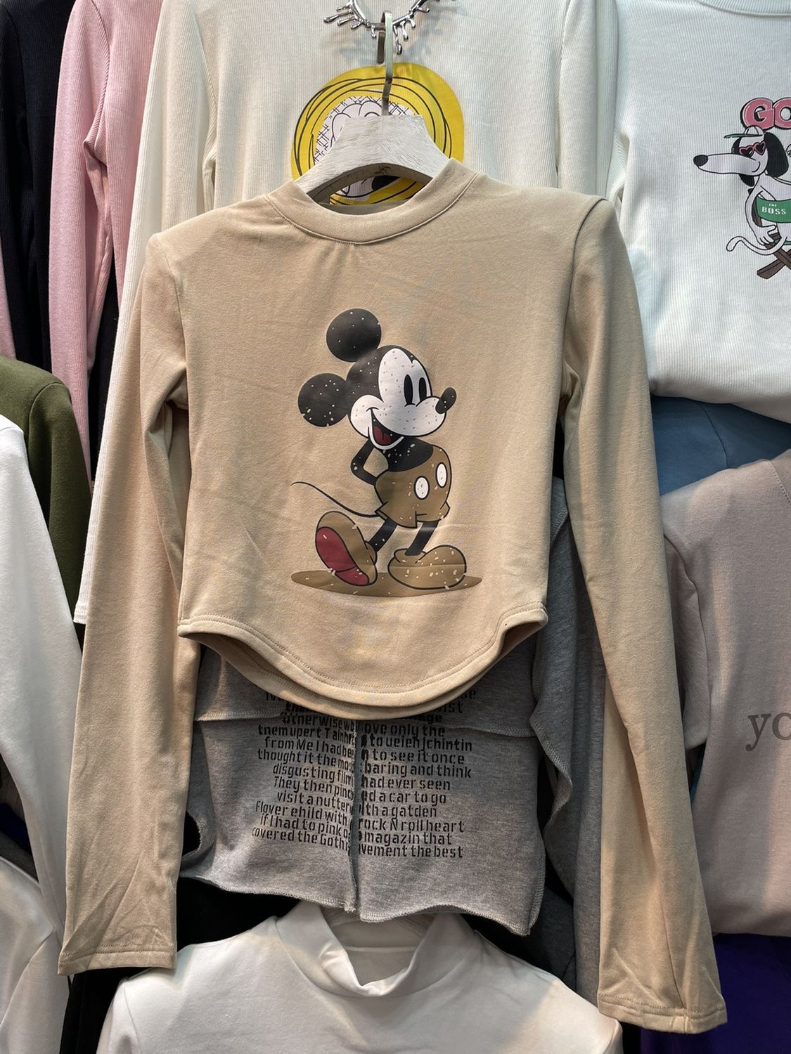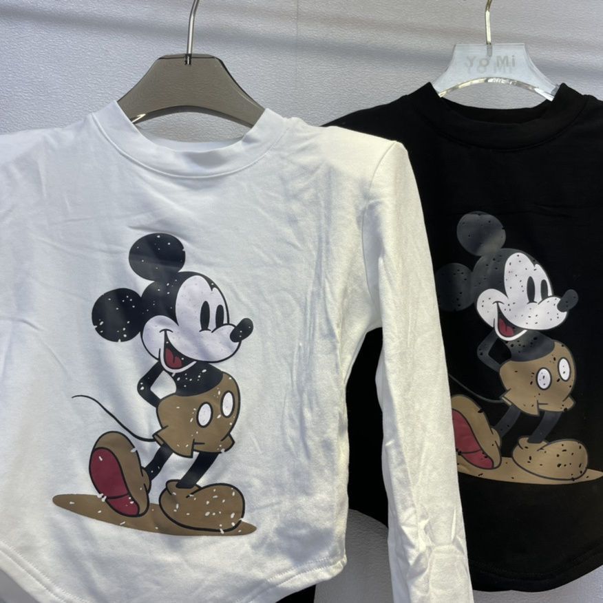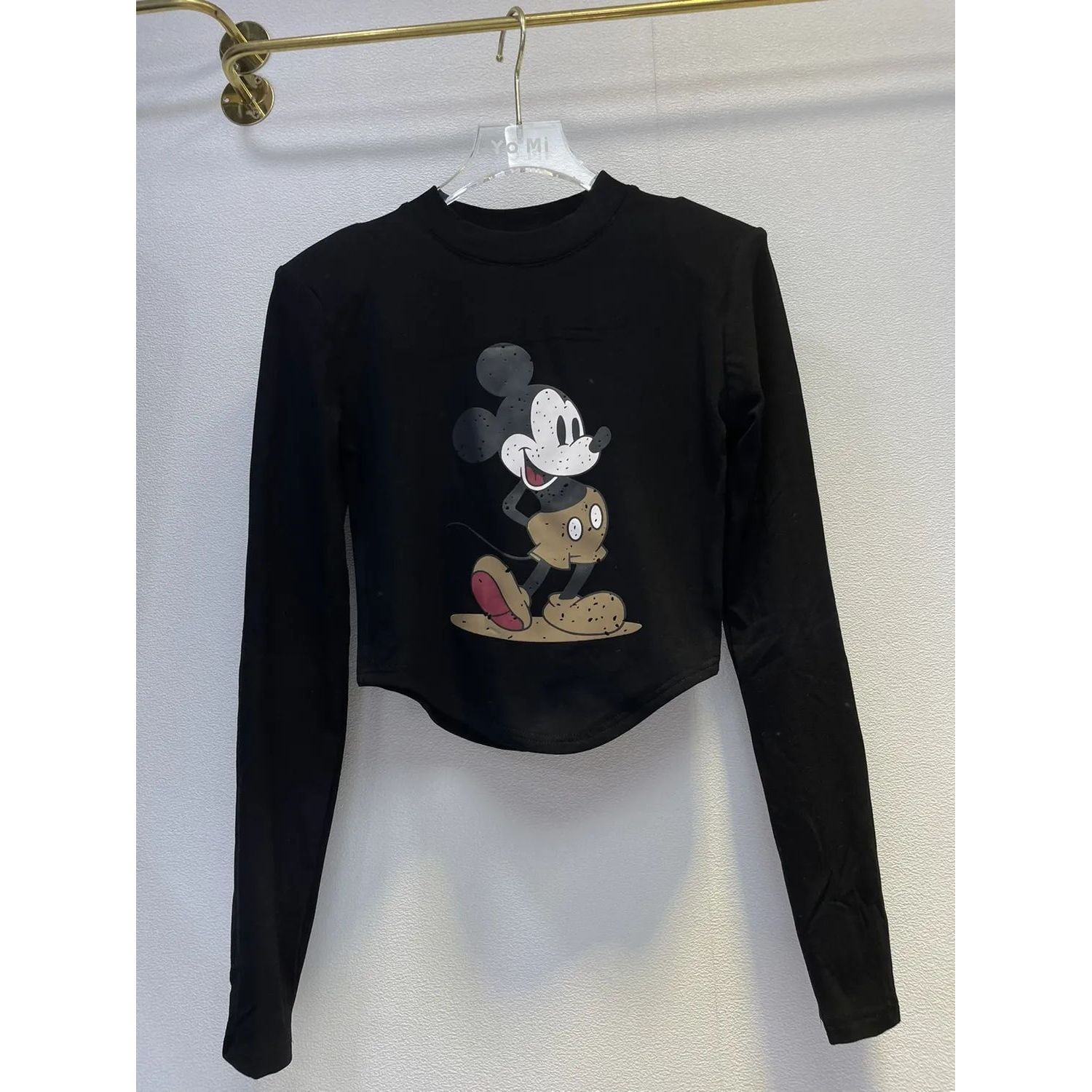 만화 미키 인쇄 긴 소매 기모 짧은 티셔츠 여성의 가을과 겨울 새로운 미국 스타일 복고풍 패션 불규칙한 인테리어
