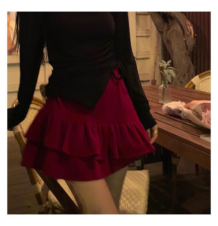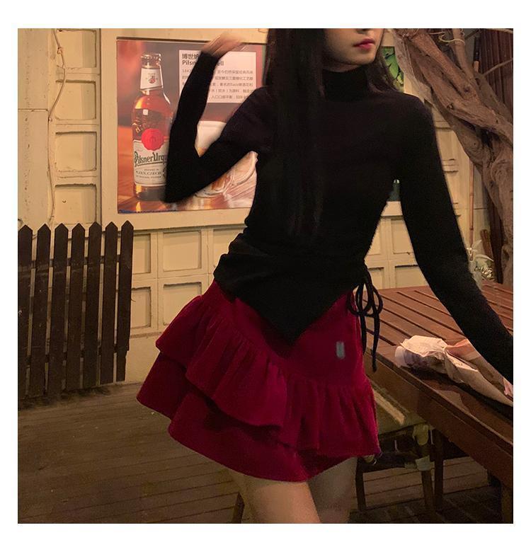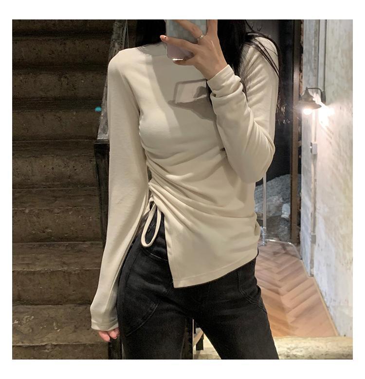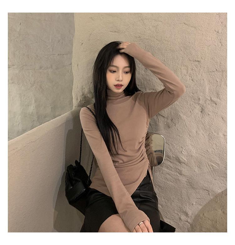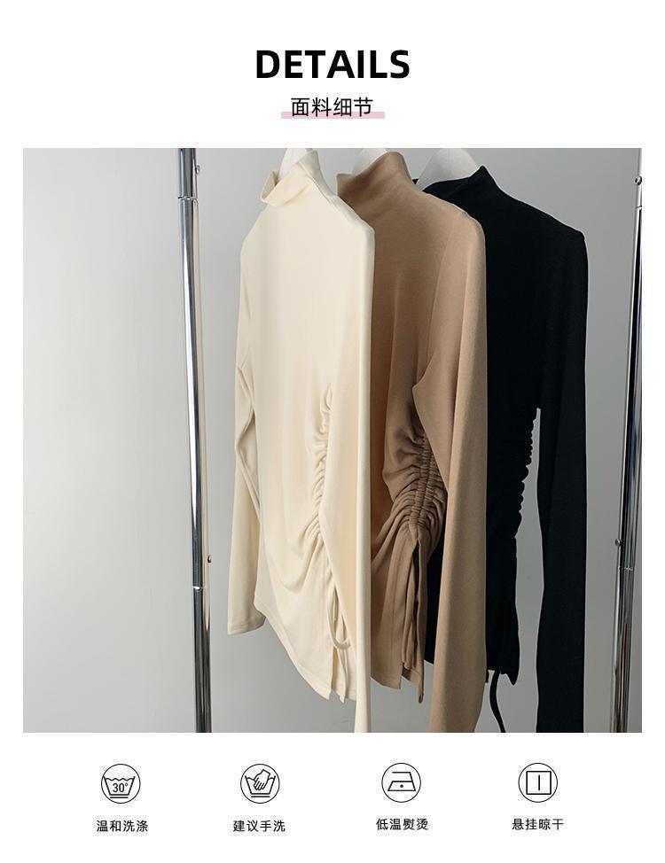 드 벨벳 모크 칼라 베이스 셔츠 티셔츠 여성 디자인 센스 틈새 가을 및 겨울 인테리어 따뜻한 두꺼운 슬림 핏 슬림 탑