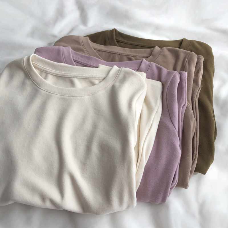 양면 벨벳 긴팔 티셔츠 여성의 가을과 겨울 따뜻한 내베이스 셔츠 느슨한 슬리밍 스크럽 탑인 올 매치