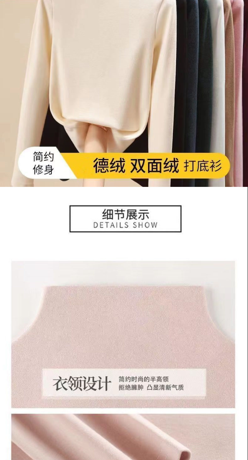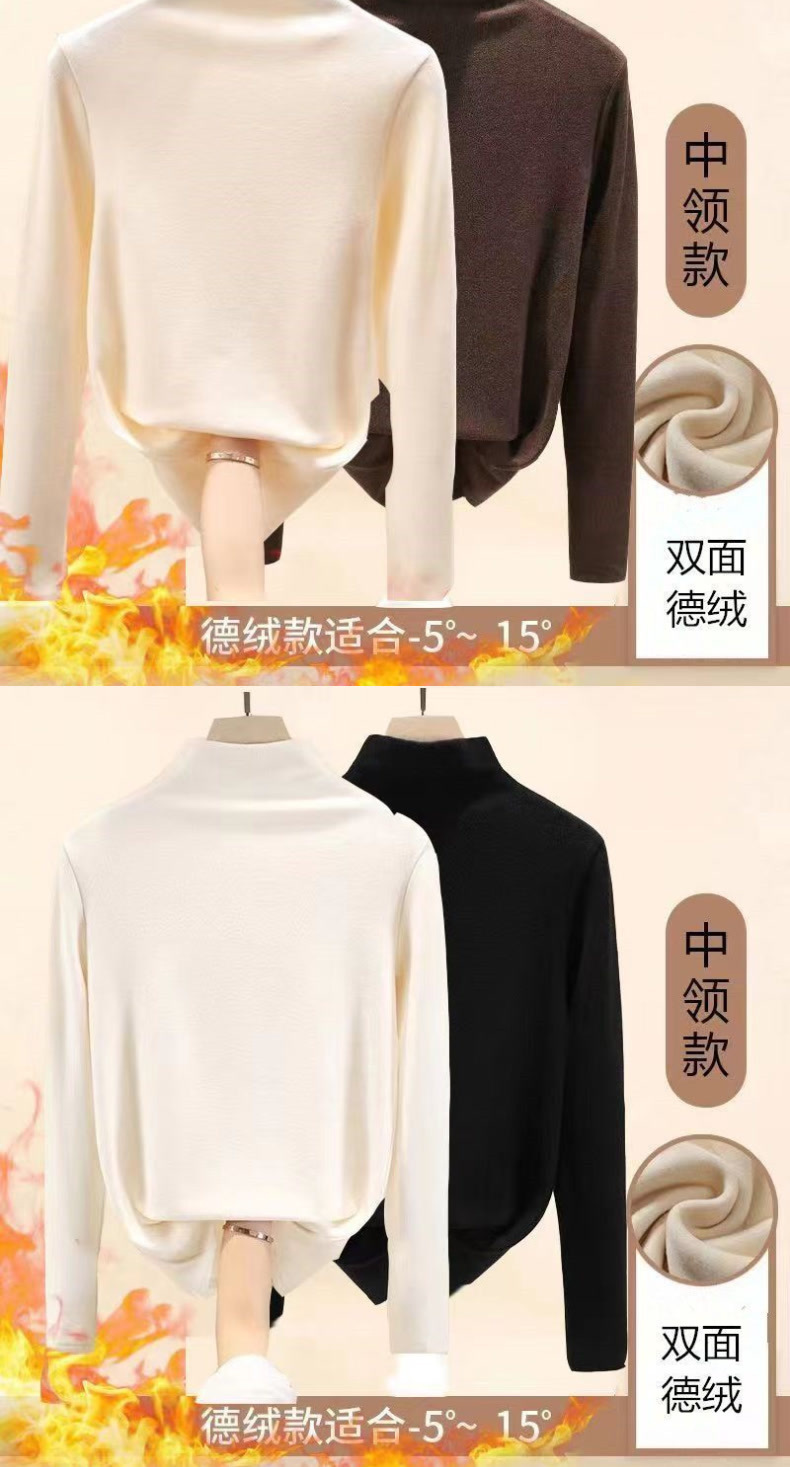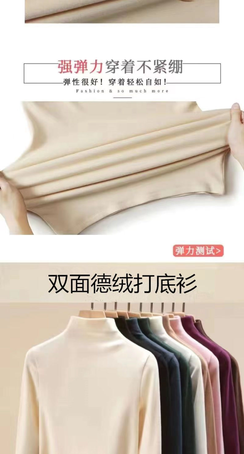 싱글/투피스 기모 두꺼운 양면 벨벳 세미 하이 칼라 하단셔츠 여성용 가을 및 겨울 인테리어 여성용 따뜻한 탑
