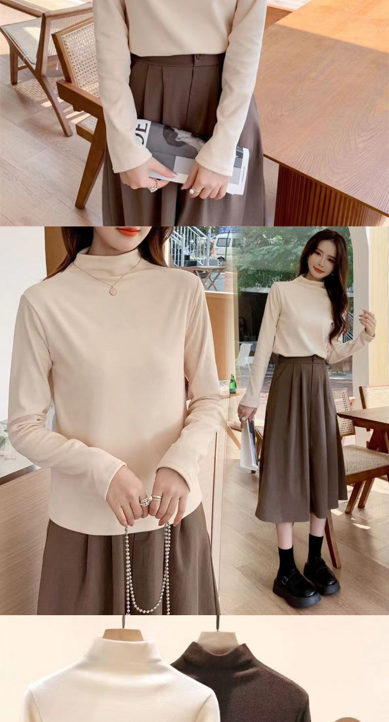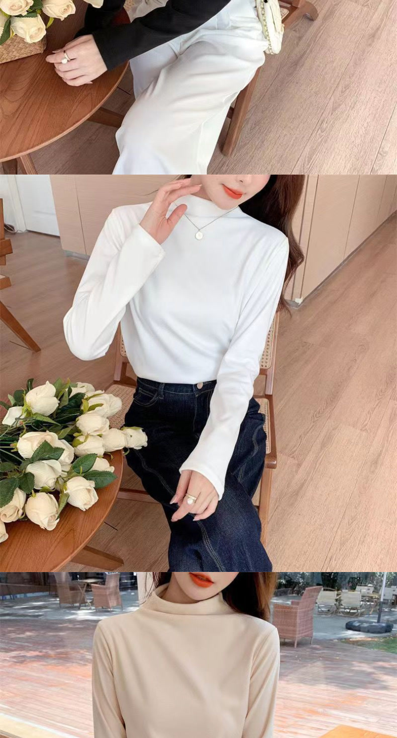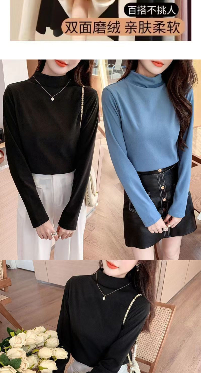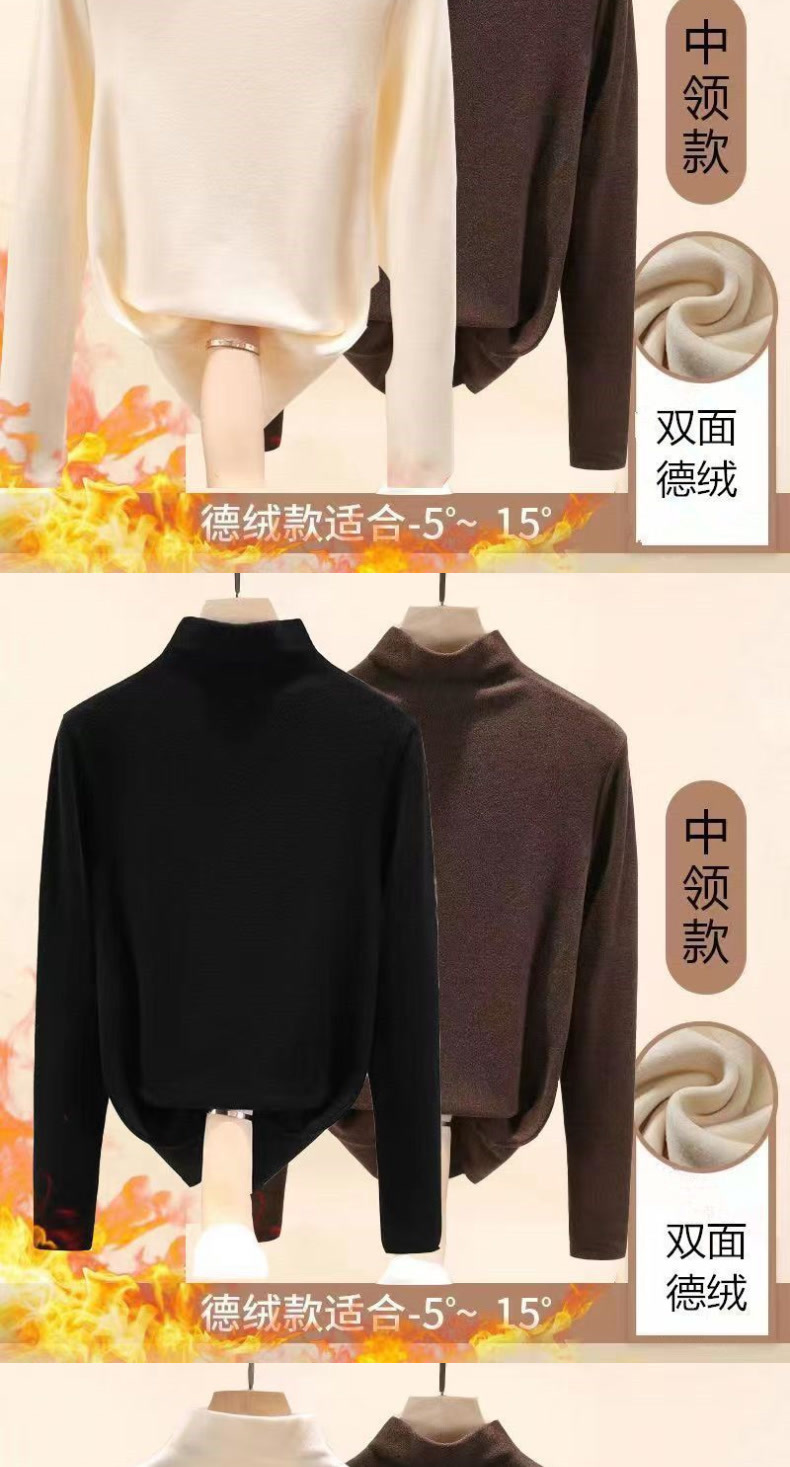싱글/투피스 기모 두꺼운 양면 벨벳 세미 하이 칼라 하단셔츠 여성용 가을 및 겨울 인테리어 여성용 따뜻한 탑