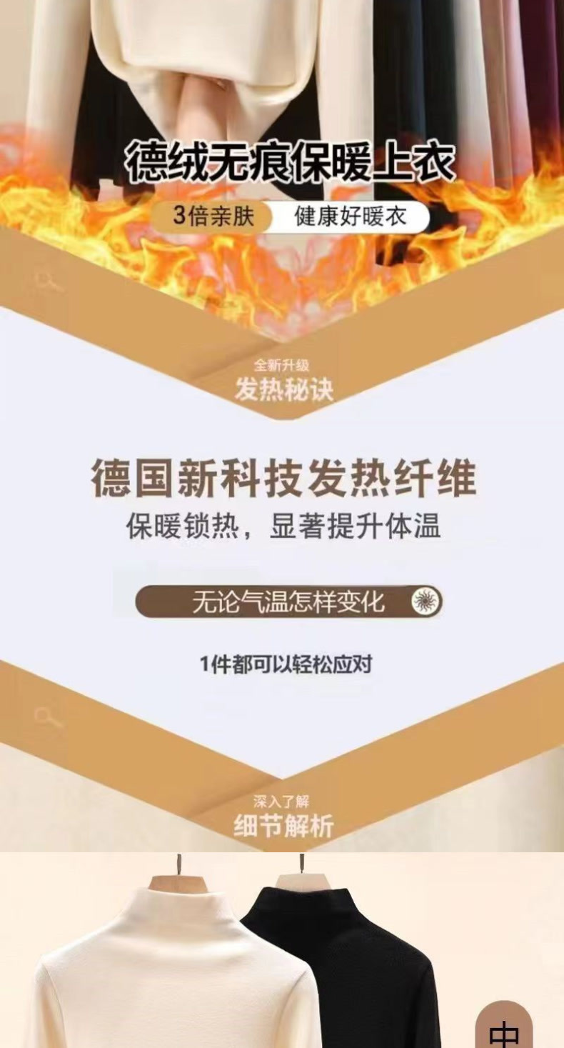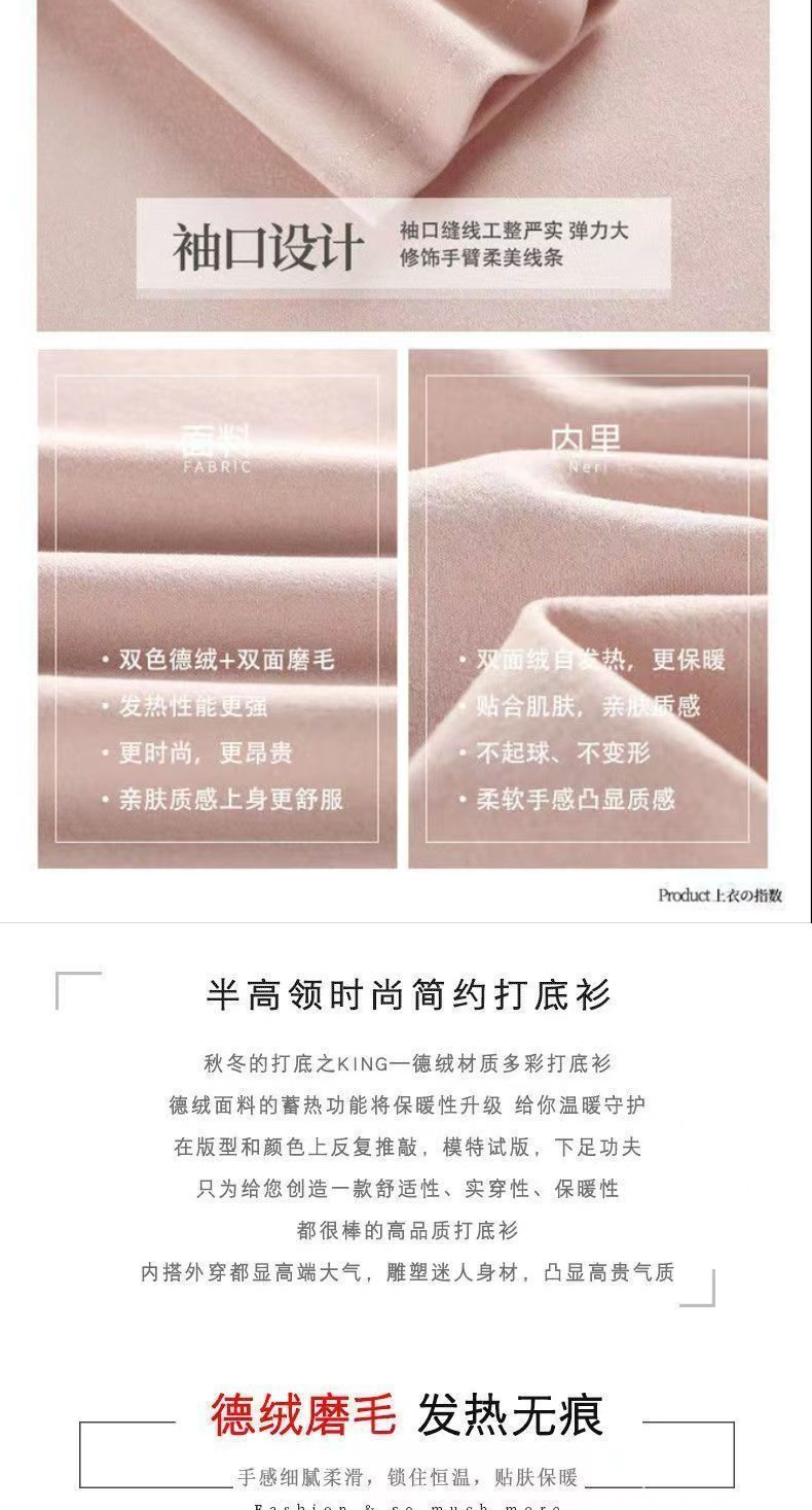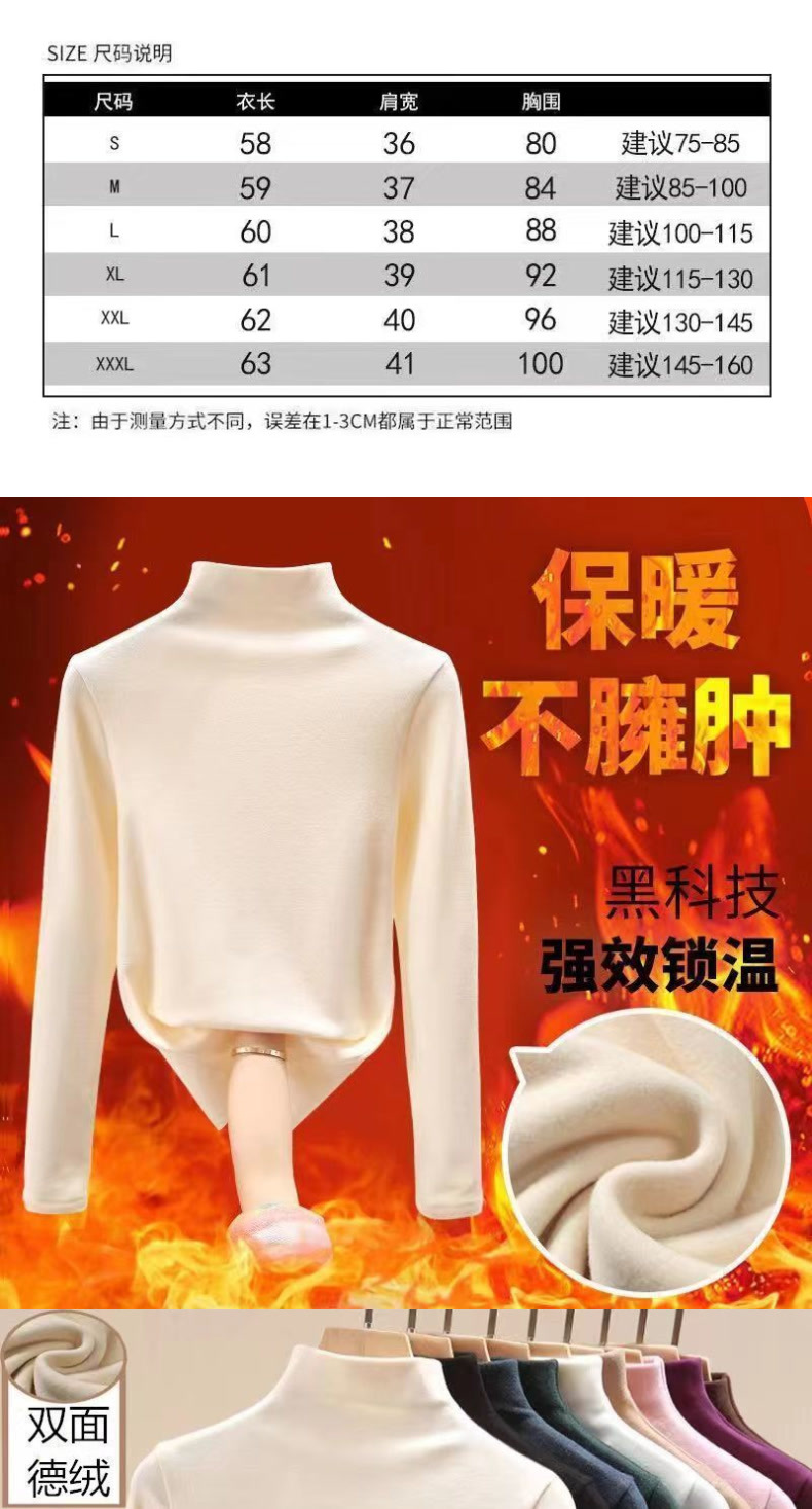 | 颜色 | 德绒半高领白色+黑色, 德绒半高领白色+咖色, 德绒半高领黑色+咖色, 德绒半高领白色, 德绒半高领黑色, 德绒半高领咖色 | 尺码 | M, L, XL, 2XL, 3XL, 4XL, 5XL |